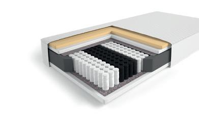- Wkład kieszeniowy otacza pianka poliuretanowa T25, która jest odporna na odkształcenia, elastyczna i wytrzymała.
