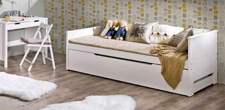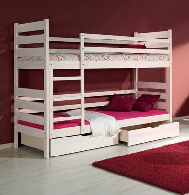 Istnieje możliwość instalacji drabinki przy dowolnym narożniku w każdym z piętrowych łóżek. Dodatkowo dla mniejszych dzieci proponujemy barierkę zabezpieczającą, którą można zdemontować gdy dziecko dorośnie.