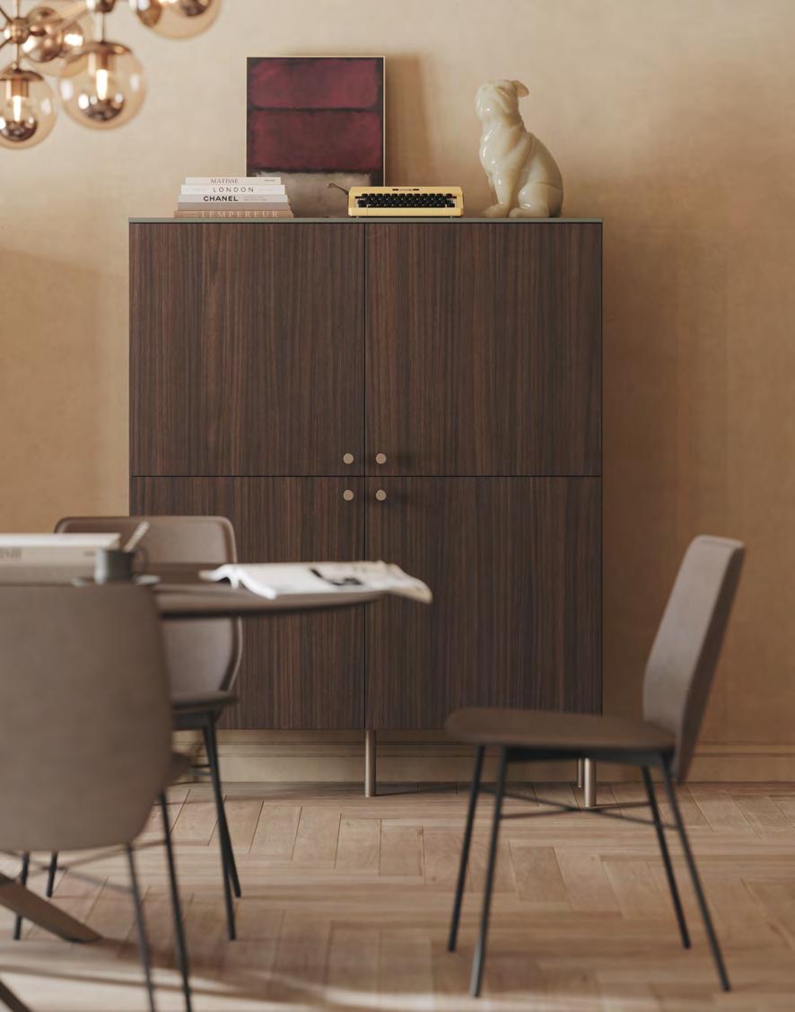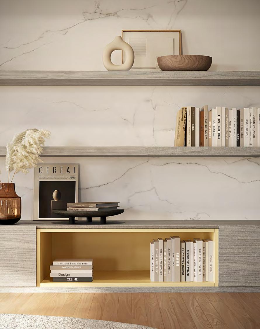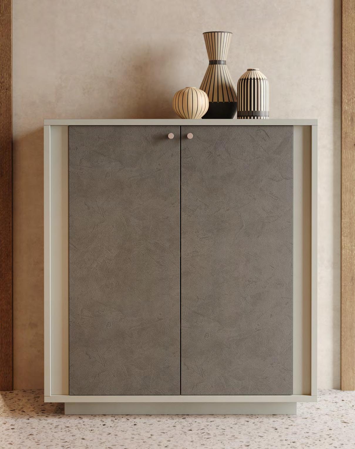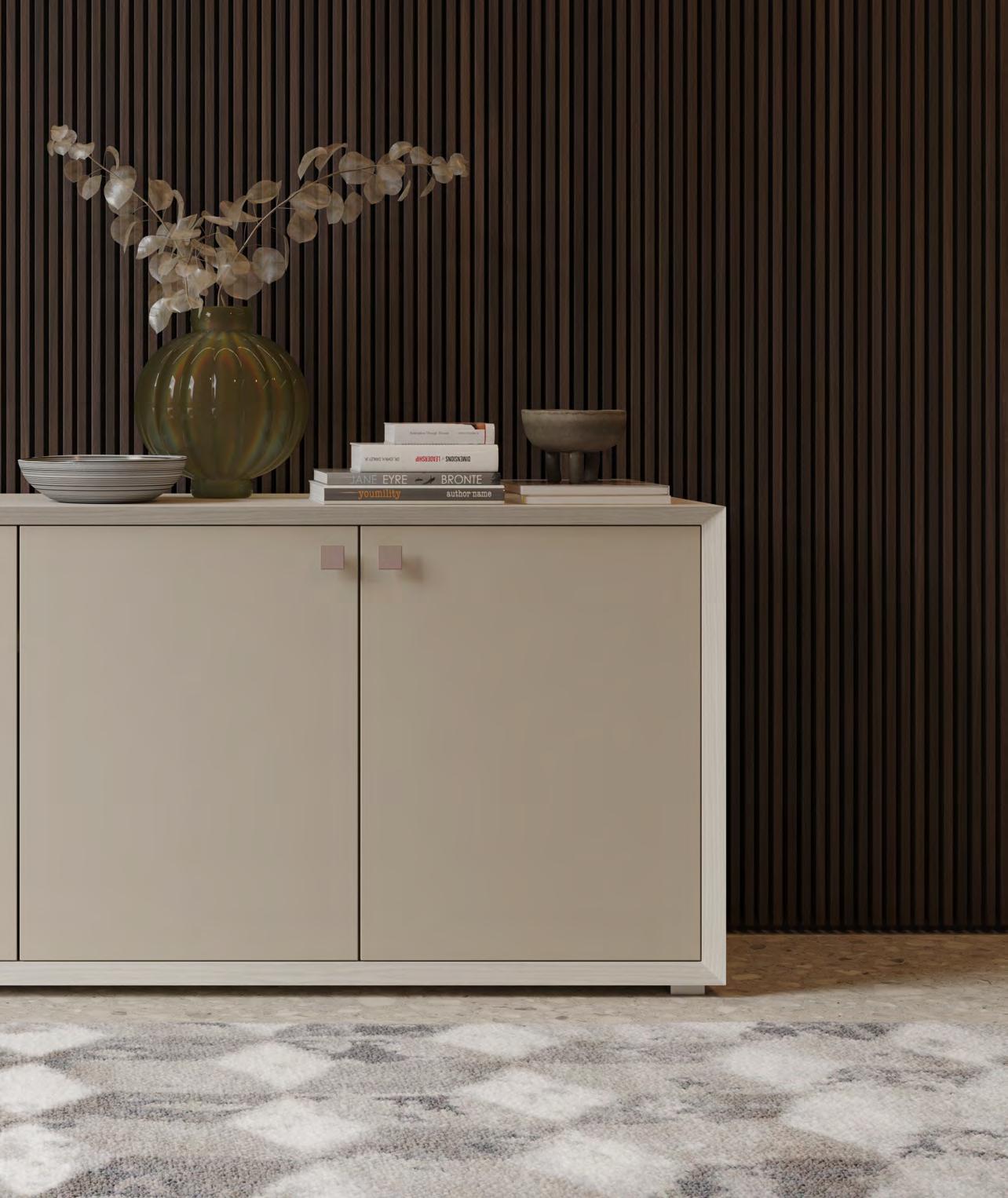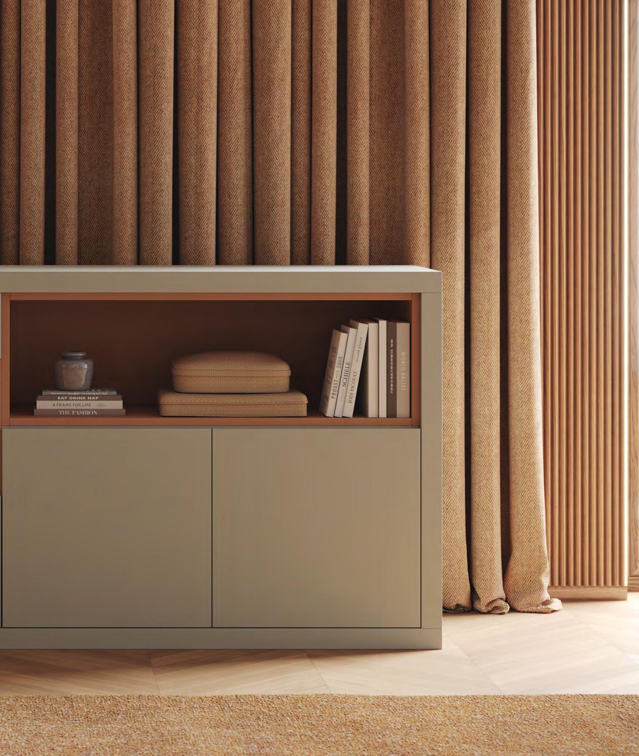 Ma il Living 2024 si impreziosisce soprattutto di finiture e colori: una palette di laccati più ispirata alla natura, che evoca sensazioni di tranquillità e pace; diverse nuove finiture vetro a scelta tra gli eleganti Canova e Sahara Noir effetto marmo, il Bronzo satinato dall’aspetto caldo e vellutato ed il cannettato Flutes Grigio scuro; tra i nuovi nobilitati introdotti spiccano invece Michelangelo e Marquinia che richiamano l’eleganza del marmo ed il Corten effetto ruggine; infine il nuovo color Rame introdotto per tutti gli accessori metallici che, affiancandosi ai preesistenti Brown e Champagne, aggiunge una nota di calore alle trame dei nostri vissuti.