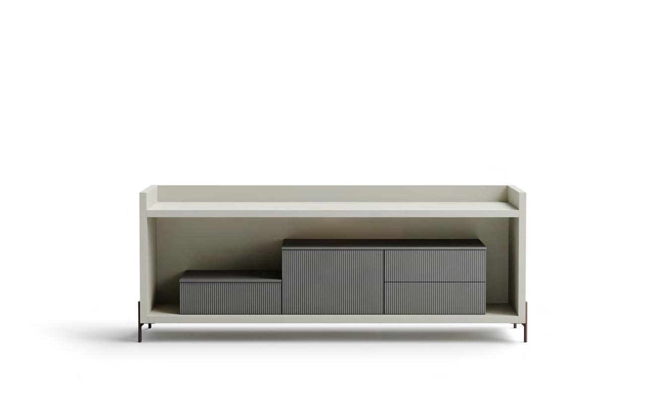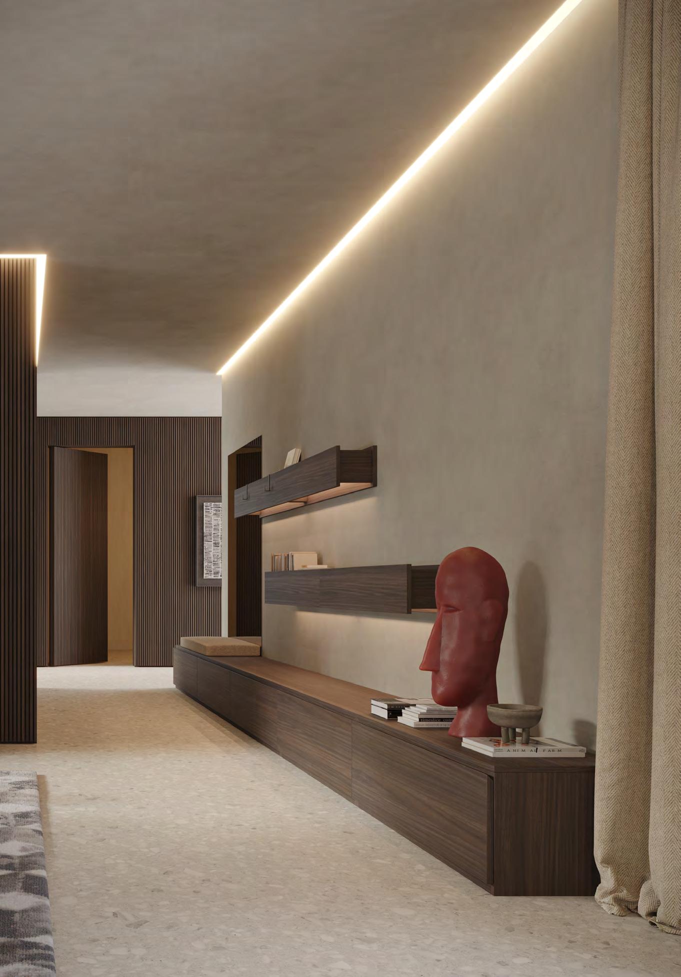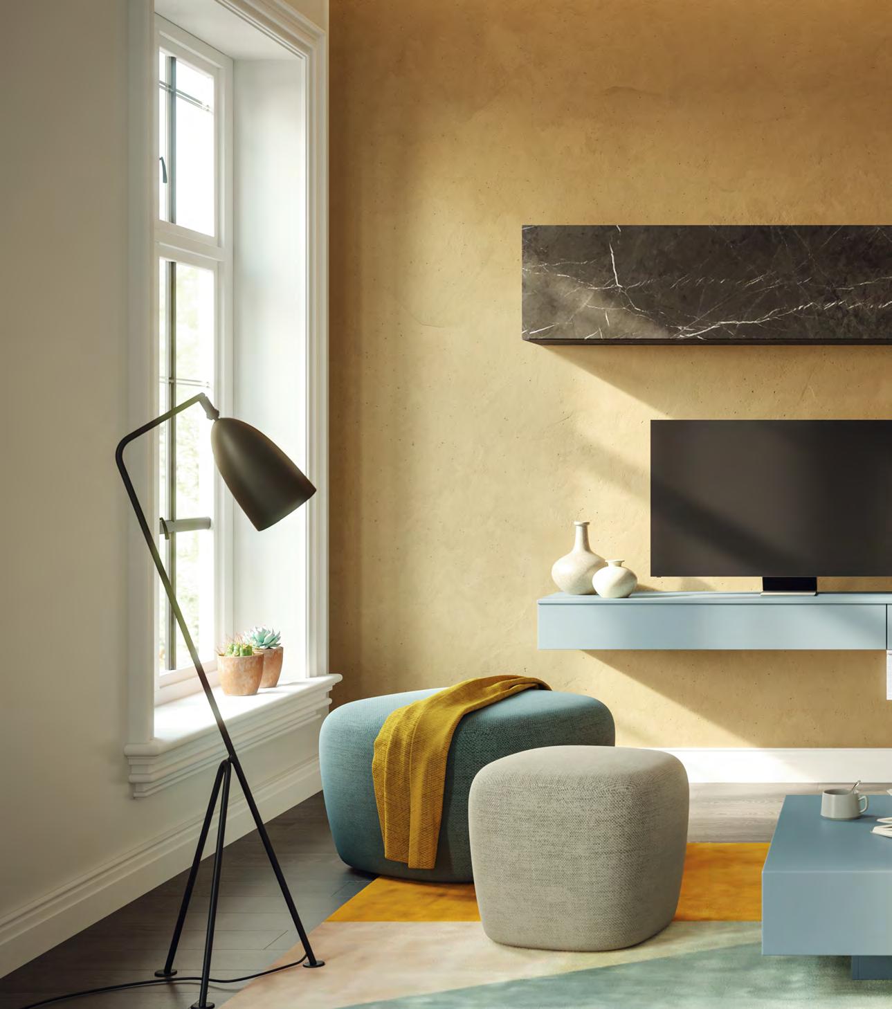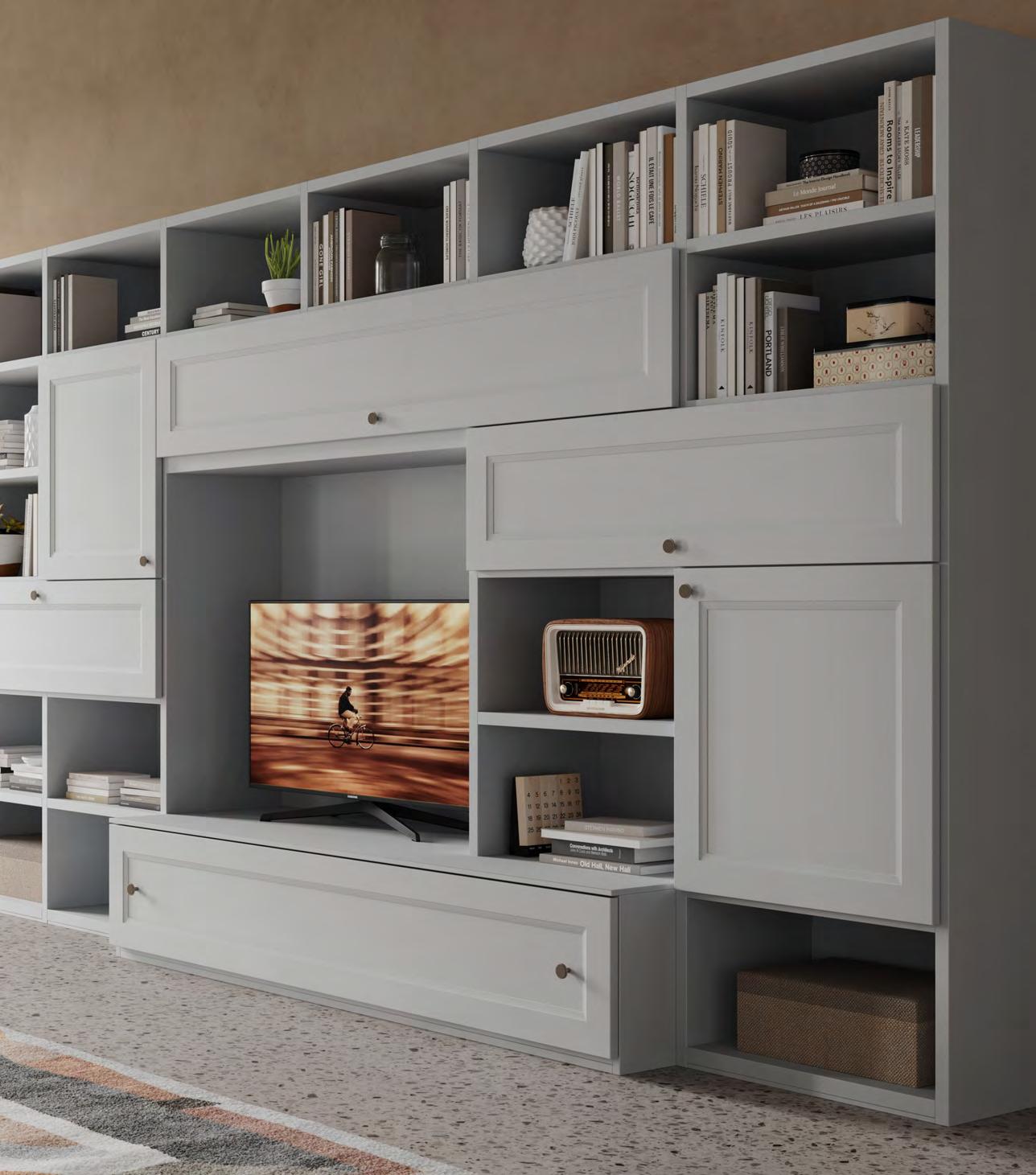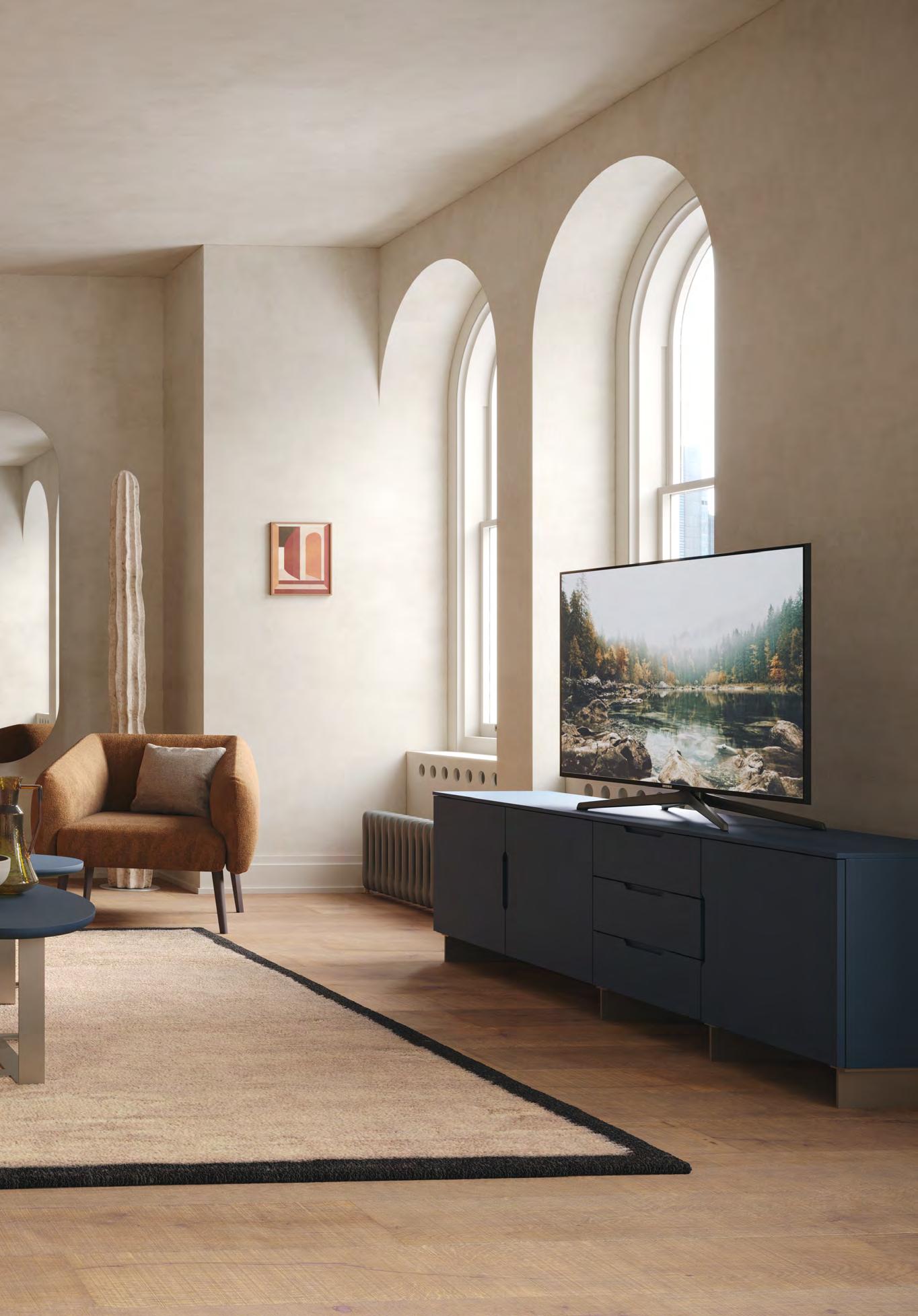 Ma il Living 2024 si impreziosisce soprattutto di finiture e colori: una palette di laccati più ispirata alla natura, che evoca sensazioni di tranquillità e pace; diverse nuove finiture vetro a scelta tra gli eleganti Canova e Sahara Noir effetto marmo, il Bronzo satinato dall’aspetto caldo e vellutato ed il cannettato Flutes Grigio scuro; tra i nuovi nobilitati introdotti spiccano invece Michelangelo e Marquinia che richiamano l’eleganza del marmo ed il Corten effetto ruggine; infine il nuovo color Rame introdotto per tutti gli accessori metallici che, affiancandosi ai preesistenti Brown e Champagne, aggiunge una nota di calore alle trame dei nostri vissuti.