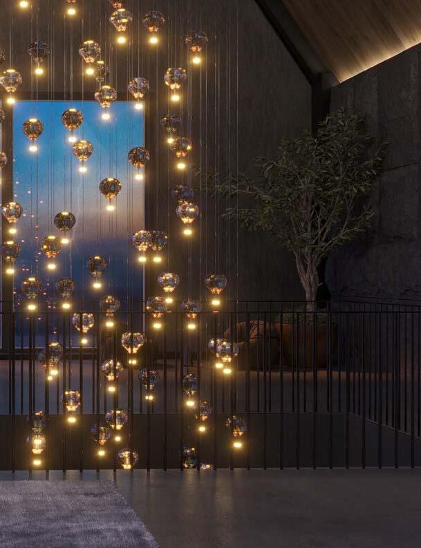 Palloncini to realizacja inspiracji Kapadocją i lotem balonem. Ryflowane szkło w kilku odcieniach kształtem przypomina balon. Dwa punkty świetlne zostały zaprojektowane z dystansem od szklanej formy, przez co tworzy się ciekawa gra światła. Wertykalna forma, subtelne refleksy na szkle oraz ciepła barwa światła tworzą we wnętrzu wrażenie lekkości.