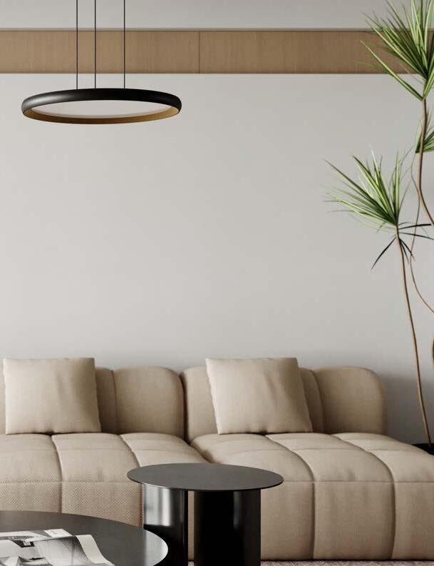 Qled to czarna lampa okrąg, która łączy klasykę minimalistycznego stylu z nowoczesnymi rozwiązaniami. Górna krawędź obręczy jest pokryta taflą przezroczystego tworzywa, które rozświetla się po włączeniu lampy. Oprawa daje możliwość sterowania barwą światła w zakresie 3000K (światło neutralne ciepłe) do 6000K (światło zimne). Dzięki temu Qled to doskonała lampa nad stół: zapewni przyjemne oświetlenie, gdy chcesz zjeść posiłek, ale może też służyć do wykonywania precyzyjnych prac.