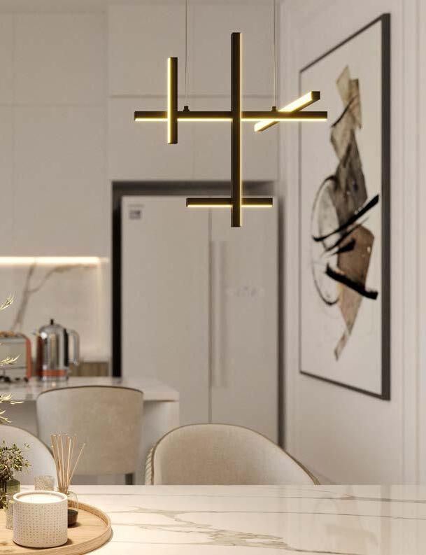 The Zumaia laps feature a minimalistic design, paired with an asymmetrical and dynamic composition. With light sources positioned both near the ceiling and suspended at varying heights, they create a captivating visual effect. Zumaia combines both decorative decorative elegance with versatility, similar to technical tube lighting. It looks stunning in a modern living room or kitchen and can serve as a stylish alternative to a traditional chandelier. Thanks to the two-tiered light sources, it perfectly illuminates a table, countertop, or coffee table in front of a seating area. The lamp is available in a matte black finish.