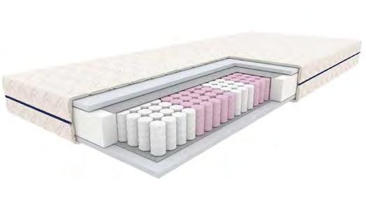 WKŁAD: sprężyna typu bonnell 11 cm, przekładki tapicerskie, pianka komfortowa - 2 cm, POKROWIEC: tkanina Tender (100% poliester) pikowany owatą antyalergiczną o gramaturze 120 g/m2, zamek rozdzielczy, wysokość: około 16 cm, twardość: 3/5