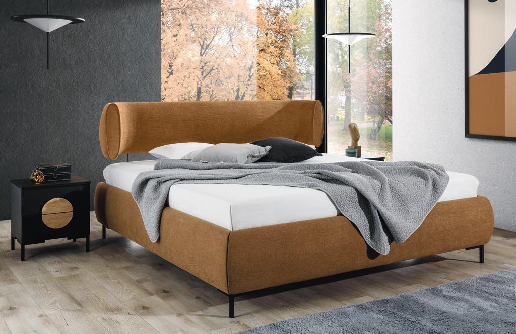 Picture shows a continental table D and a 120 cm high bed in fabric VOGUE 09 AMBER