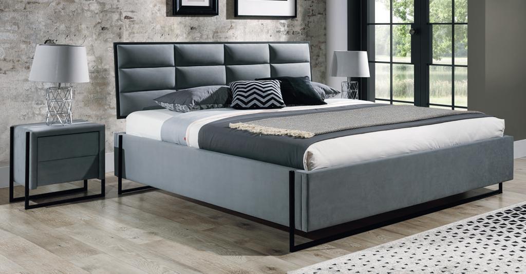 Picture shows the Soft Loft bedside table and bed in fabric CYBER 65 GREY