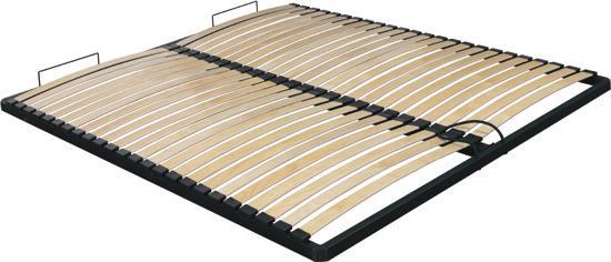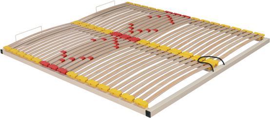 30 flexible slats with a width of 38 mm, spacing between slats 25 mm, metal frame with a section of 40 x 40 mm, height of the frame approximately 70 mm, 6 slats with adjustable hardness, flexible handles of duoflex type provide double cushioning and no so-called dead zone in the middle part of the frame. Self-assembly (frame in a package).