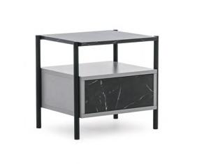 Picture shows the Vertigo bedside table and bed in fabric COCO 83