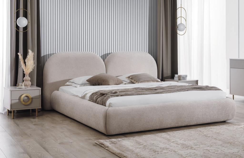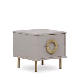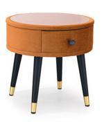 Picture shows the Ovalo bedside table and bed in fabric RELAX 81