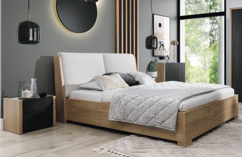 Picture shows the Nord bedside table and bed in fabric VERA 15