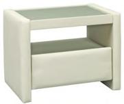 Picture shows the Nubo bedside table and bed in fabric LEGACY IVORY 1