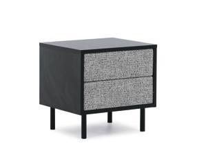 Picture shows a continental B bedside table and a bed in fabric PIANO 04