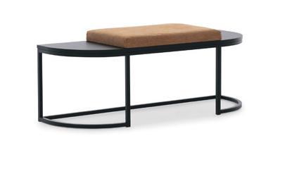 Picture shows the Nello bedside table, bench and bed in fabric OREO 04