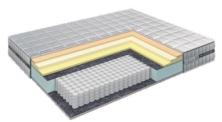 SIESTA is a hybrid medium firm foam and spring mattress. The highest quality thermoelastic foam and very dense multipocket springs, each of which responds separately to pressure, provide proper body support also for couples of different weights. A thick, soft cover quilted with high-flexible foam in a geometric pattern provides maximum comfort. The model is decorated with gray decorative piping and an elegant ribbon. The underside of the cover made of gray breathable fabric in a fine pattern ensures proper ventilation. A zipper on each side allows the top layer of the cover to be completely detached for washing.