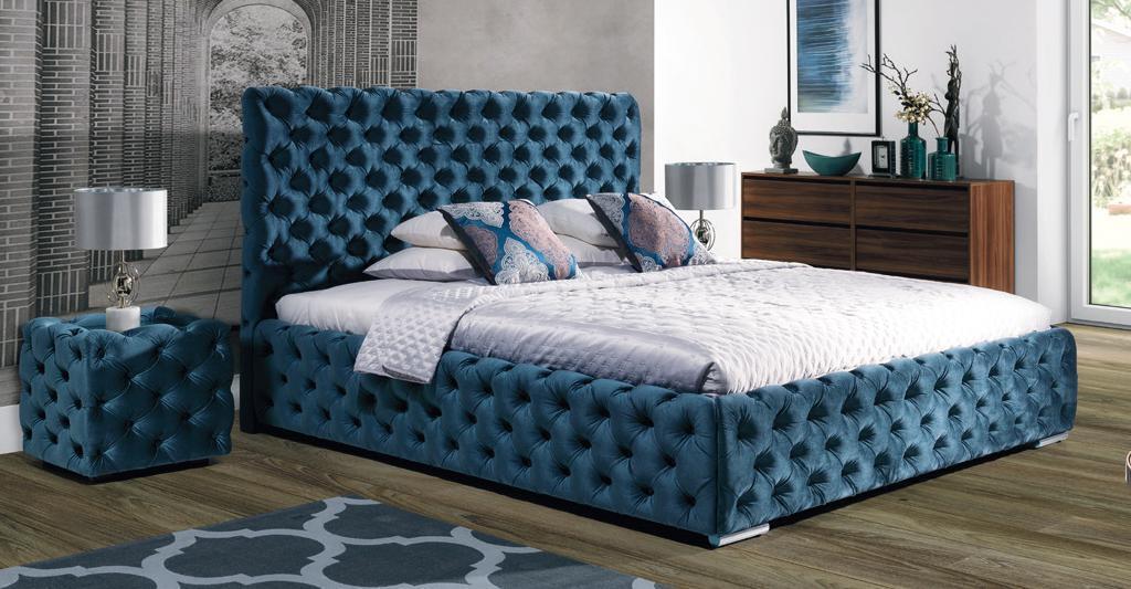 Picture shows Calgary bedside table and a bed in fabric VENUS VELVET 2940