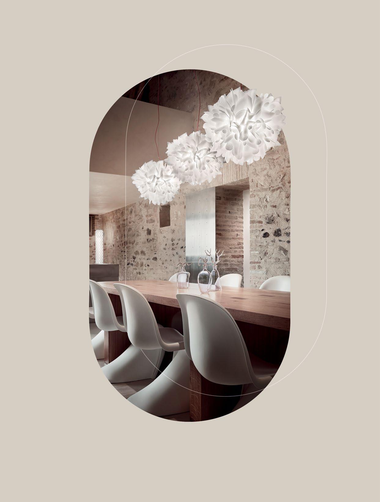 SLAMP REDEFINES LIGHTING THROUGH AN IMMERSIVE BACKDROP ABLE TO BE TRANSFORMED INTO POWERFUL, FULFILLED DESIRE . SLAMP VUOLE RIDEFINIRE IL CONCETTO DI ILLUMINAZIONE IN SCENOGRAFIE DI LUCE COSÌ POTENTI DA DIVENTARE BISOGNI