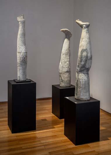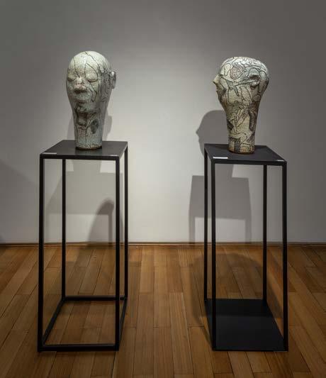 Ya desde su operación visual y sus cuotas estéticas, el trabajo de Fernando Hinostroza Rivera, nos conmueve, desde sus piezas que involucran estos volúmenes bruta mente refinados, de cabezas y figuras emancipadas/ empoderadas de gallarda monumentalidad conciliadora, las que además de su corpulenta presencia, incorporan detalles de esgrafiado gráfico, tatuajes perpetuos que en el trazo a la cerámica fresca, adquieren la fuerza de códices amorfos o surcos en una lectura braille atemporal, que potencia su puesta en escena, activando desde el introvertido amasar cerámico, las señaléticas que nos guíen a un residir mejor, en el silencioso presagio que camina la pre cordillera de Santiago, desde donde nuestro artista convocado, habita su propio territorio y ser.