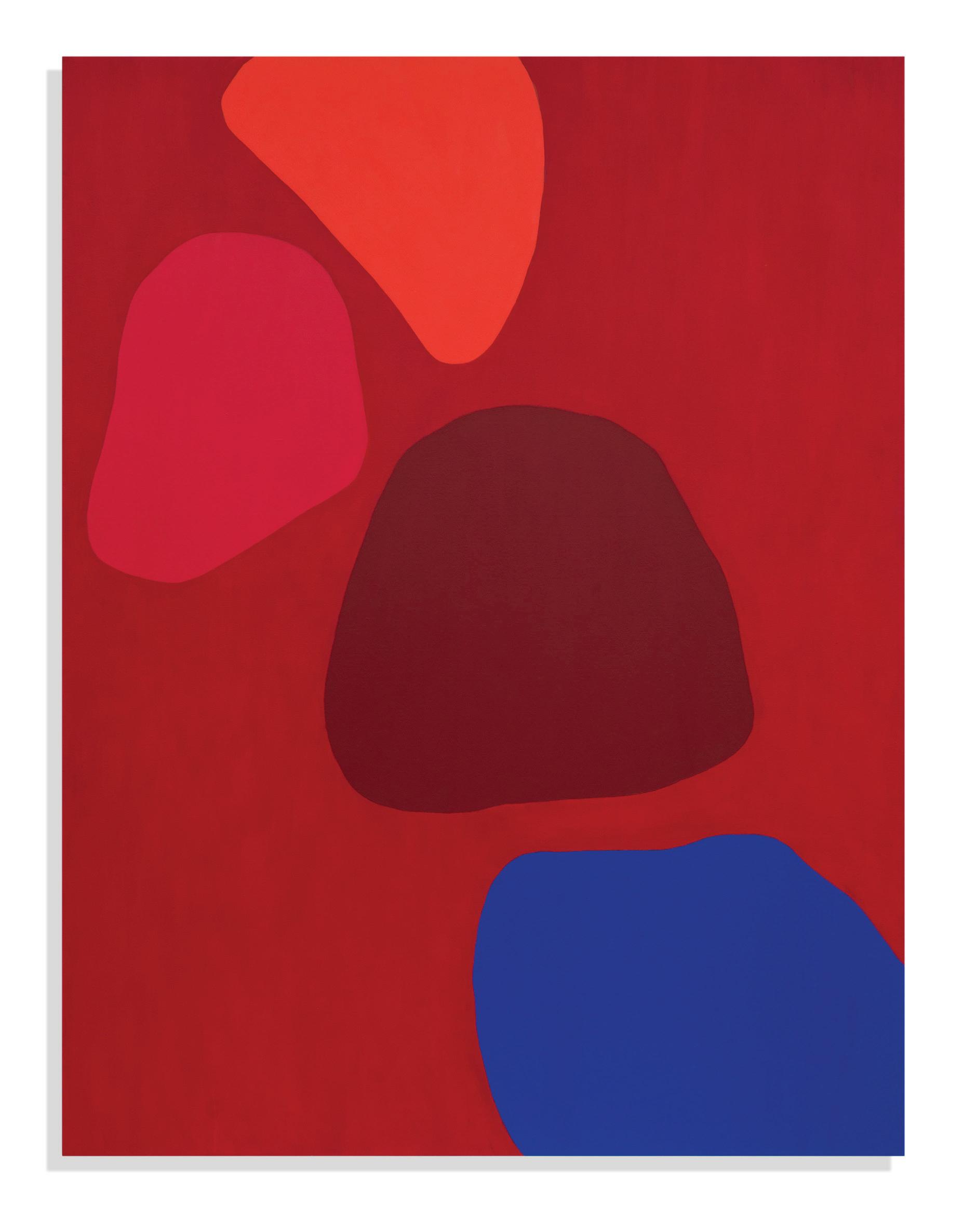 This exhibition by Germana Monte-Mór brings together a series of new works produced in the last three years. These are paintings of different dimensions characterized by the use of solid colors, juxtaposed and deriving the organic forms so characteristic of the artist‘s imagery. The painting plane gains depth in these works from the creation of boundaries between the forms through the application of pigments or asphalt on the fabric – a technique es pecially well developed by the artist – or even through incisions made on the canvas.