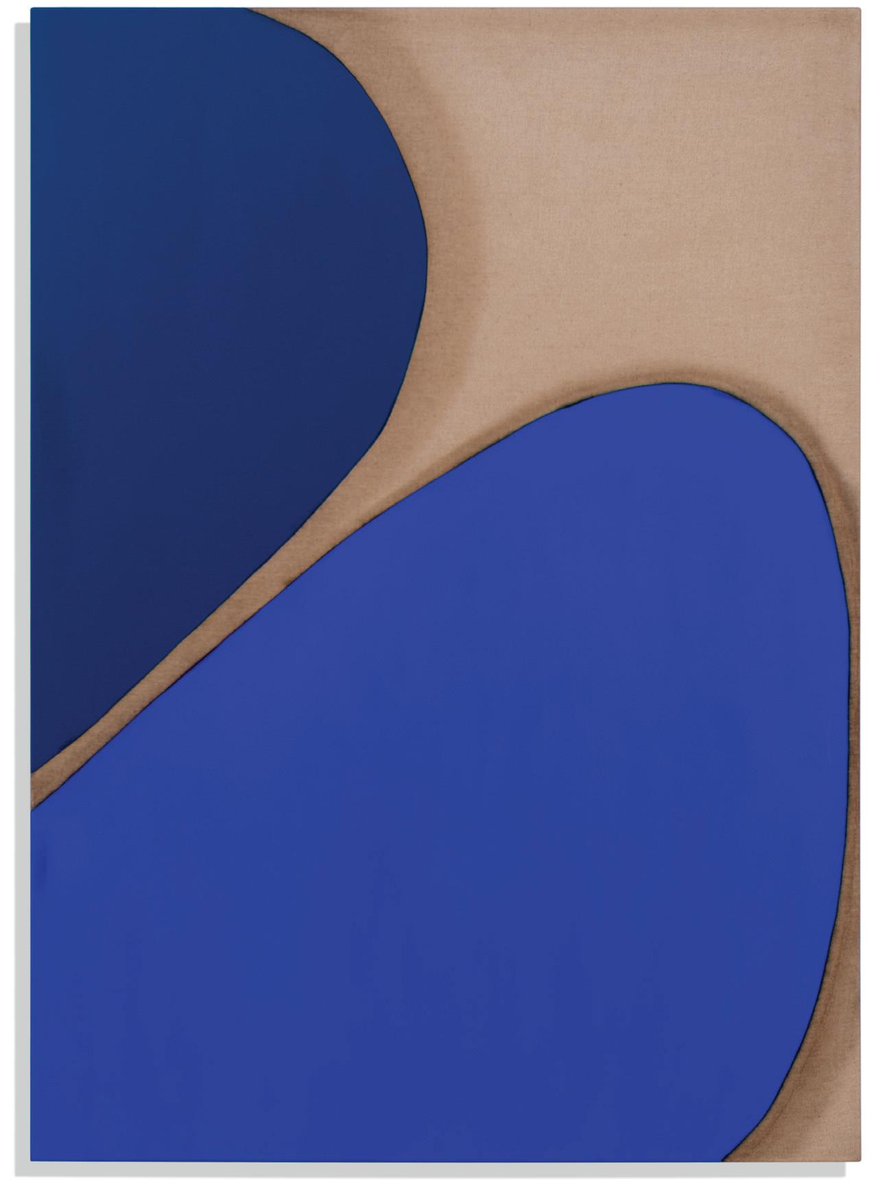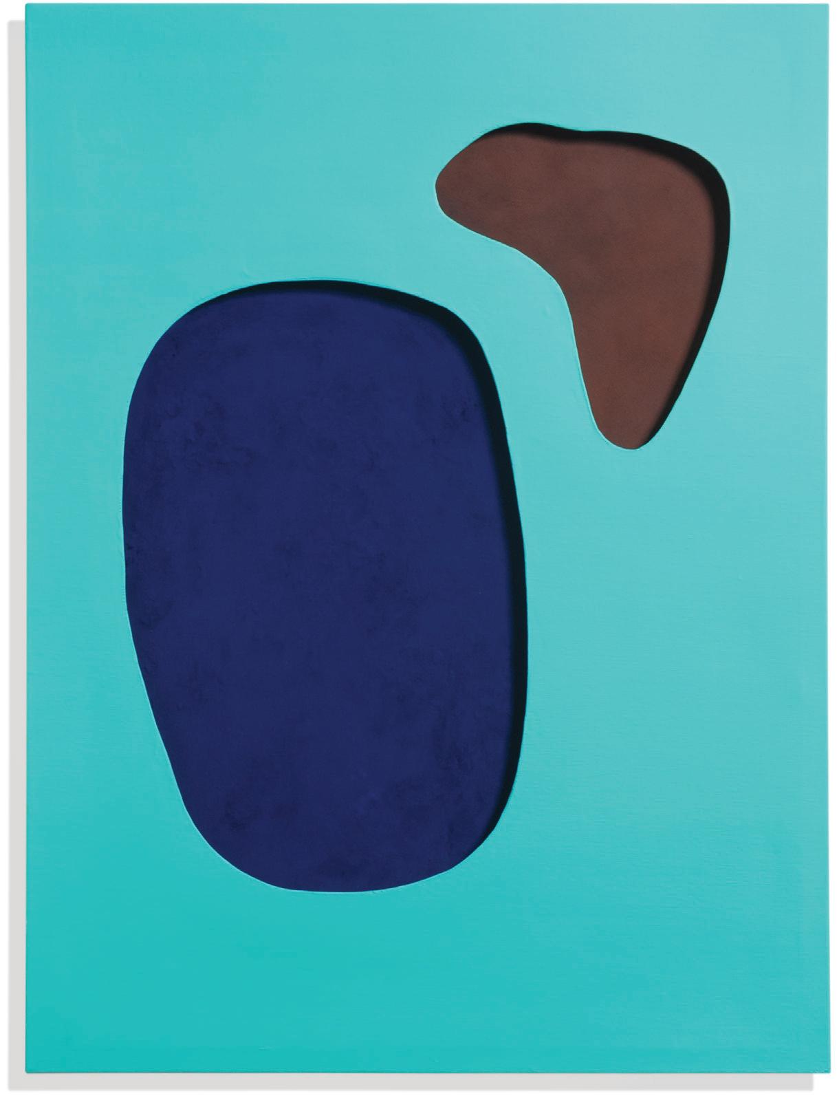 Essa experiência abriu caminho para uma pesquisa em direção à tridimensionalidade, resultando em diferen tes resultados escultóricos. Algumas pinturas de menor escala do conjunto reunido aqui apresentam um resulta do de procedimentos de sobreposição de telas e criação de volumes. As formas curvilíneas formam volumes deli mitados em baixo-relevo com aberturas feitas por incisões no tecido. “Anteriormente, as formas que eu criava eram acompanhadas de sombras, que eu fazia na própria pintura. Agora, utilizo duas telas sobrepostas e essas sombras surgem em uma das camadas, de forma concreta”,3 diz a artista. As formas geradas nesse procedimento se mantêm no vocabulário formal da artista, mas o gesto de formar a cavidade é mais