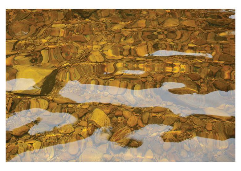 topográficos. Estando diante dessas pinturas, não há como não pensar em suas séries de fotografias Âmbar, 2008, e Pedra mole, 2010, feitas na natureza, em espaços abertos, com a presença particular de elementos minerais. No primeiro trabalho, ela retrata leitos de riachos cobertos de seixos que, vistos através do movimento da água, pelo fenômeno da refração, aparentam ser macios e maleáveis.