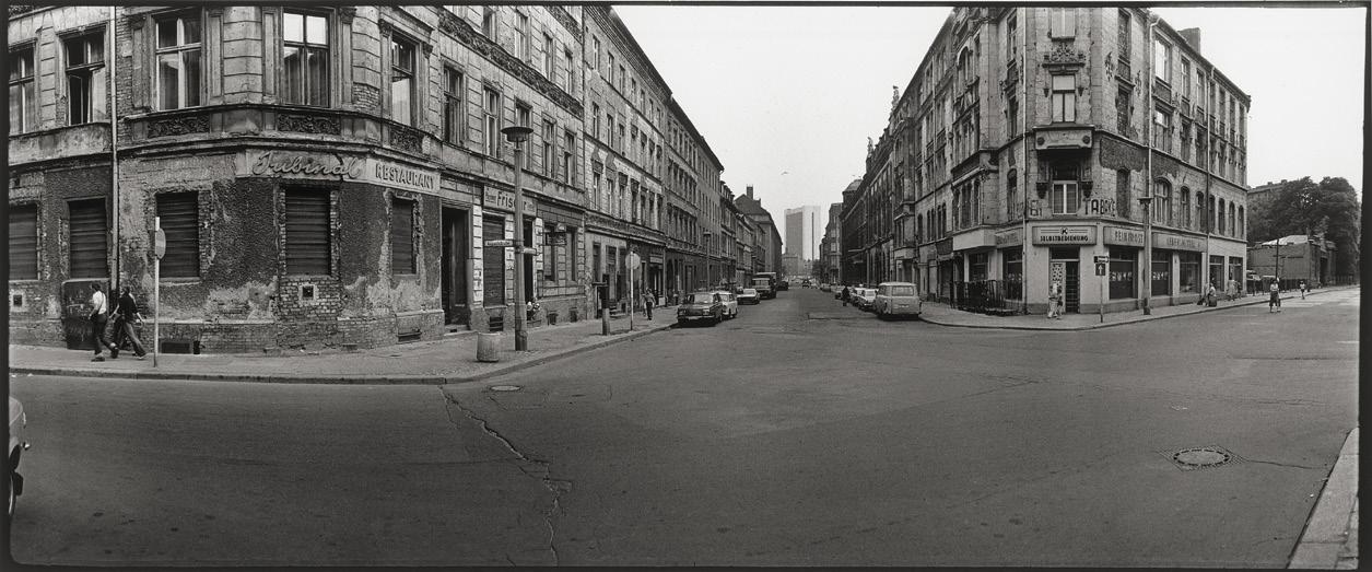 4218* Oranienburger Straße, Berlin; Tucholskystraße/ Ecke Auguststraße, Berlin ; Oranienburger Tor, Berlin 1979. 3 panoramic gelatin silver prints, printed 20052007. Each circa 22 x 52,5 cm and 24 x 57 cm (32 x 60 cm). Each signed, titled, and dated by the photographer in pencil as well as with photographer‘s stamp on the verso.