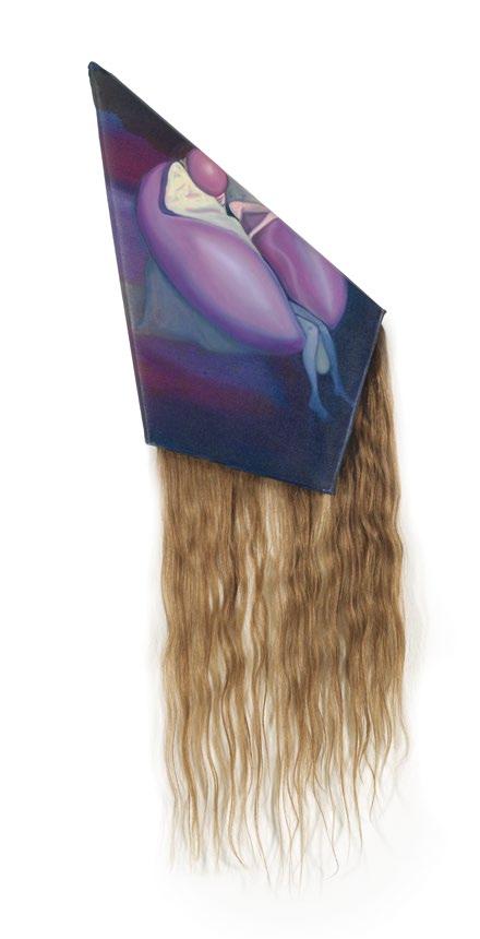 Chez Hippolyte Hentgen, l’association libre, la mise en tension d’éléments documentaires empruntés à une histoire collective ou d’éléments plus personnels, se donnent plutôt comme un rébus aux sens polyphoniques : chez elles, la découpe des corps, fragmentés et associés à divers motifs décoratifs, objets ou éléments naturels, peut avoir une résonance critique, féministe parfois, mais aussi plus onirique et poétique. C’est un féminisme critique chargé d’un esprit ironique et caustique très dada que l’on retrouve chez Myriam Baudin dans des représentations picturales où le corps de la femme morcelée est hybridé à divers éléments hétérogènes. Héritière de l’univers de Léon Bloy, à la fois violent et drolatique, fasciné par l’objet et son symbole, pour Myriam Baudin le photomontage est un « moyen d’ouvrir les yeux sur un monde tyrannique ». Pour elle, la pratique du collage est une façon de « se faire miroir de la violence que nous impose de ressentir le monde sociétal puis de réorganiser ce déséquilibre (sur toile ou autre) pour une échappée poétique ». Son efficacité chromatique et géométrique qui tend à une simplification efficace de l’image doit autant à sa formation en maquette publicitaire qu’à l’apport de la peinture renaissante. Un travail de la matière et de la couleur qui ré-insuffle une chair à son imagerie kitsch et pop. Une manière de faire face au morcellement d’une « société consommante, tatouée, pucée et parquée » en recherchant « l’animalité, la chair pour retrouver le contexte émotionnel de la matière et du geste pensé ». Une sorte de « pop sensationnisme » qui vient contrecarrer la violence du monde et la transformation de nos corps en objet.