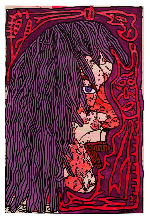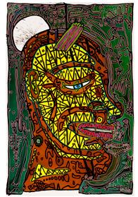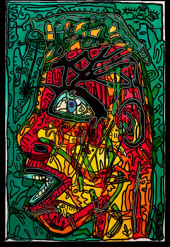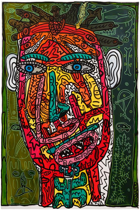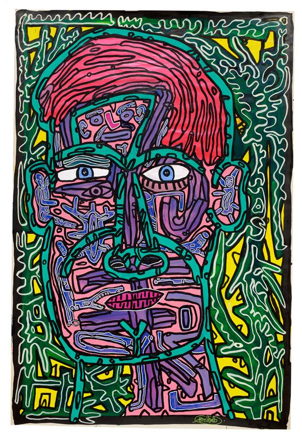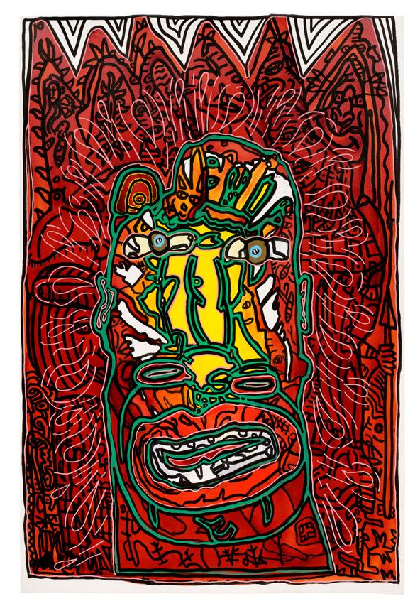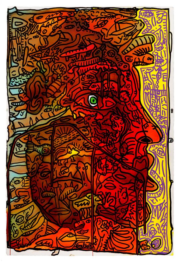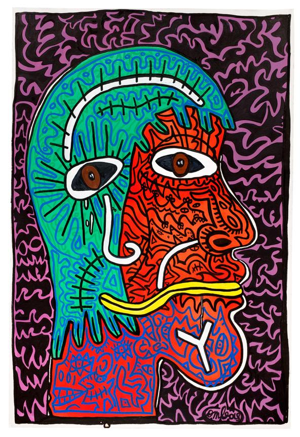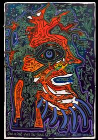 devenant une face, et ainsi sans fin. Comme si Robert Combas passait sans cesse devant lui et qu’il portait cet instant de vie et de mort en lui, de mort et de vie tout au fond de lui.