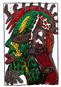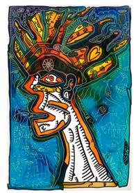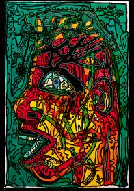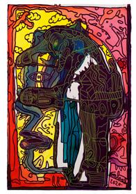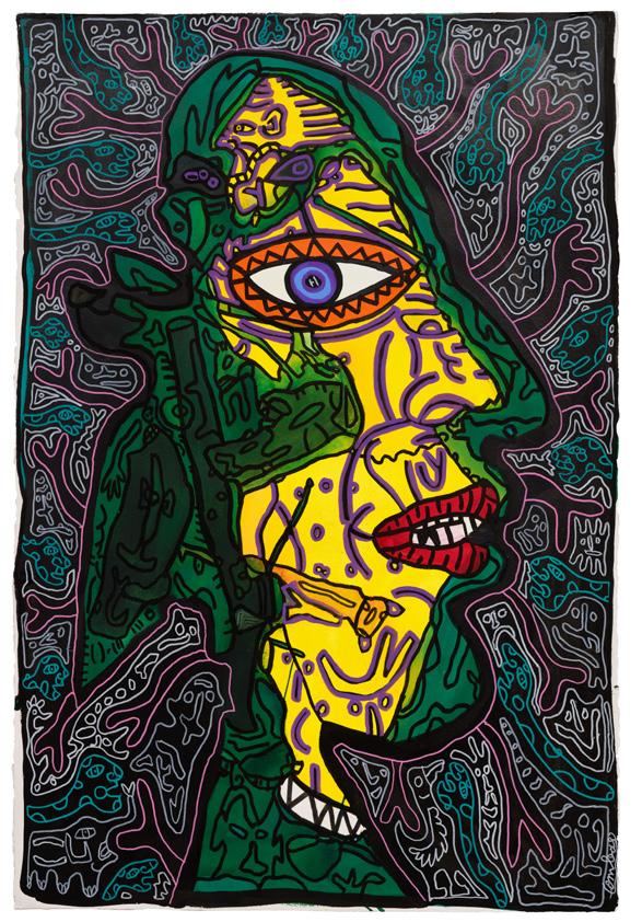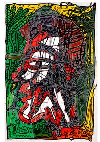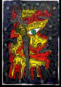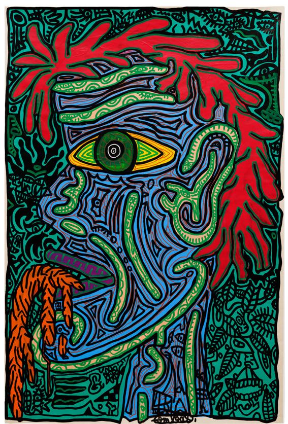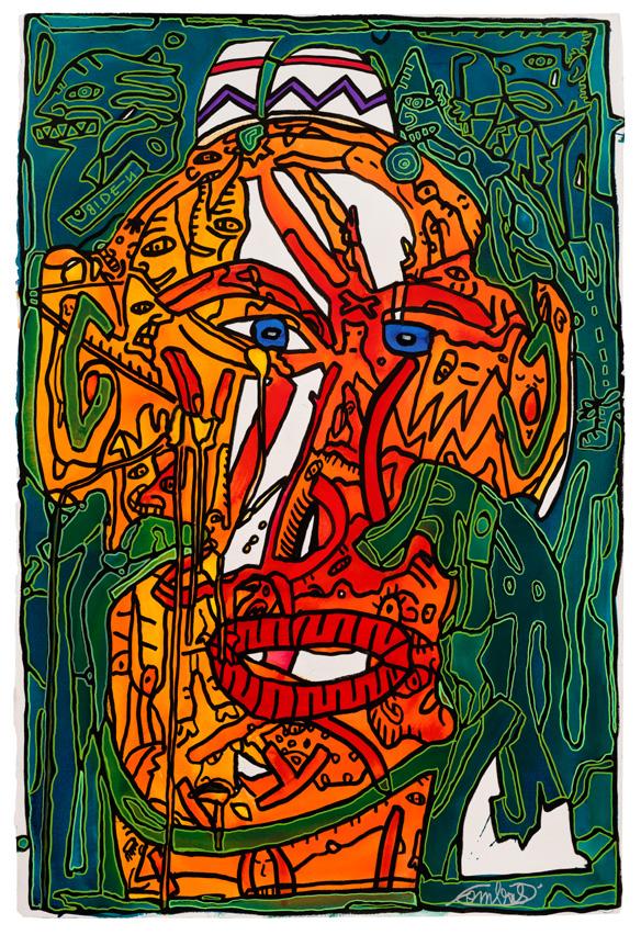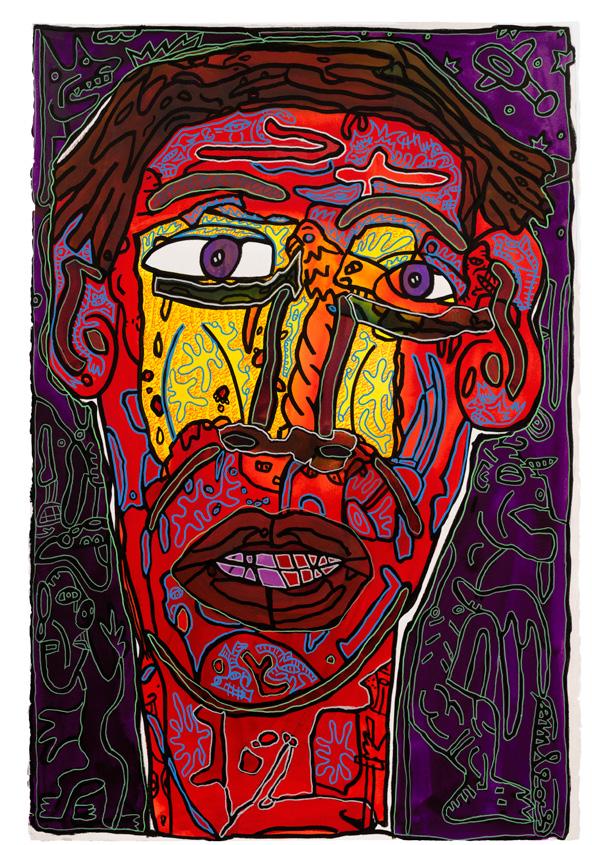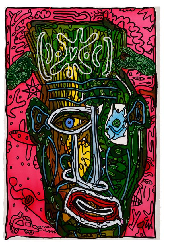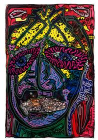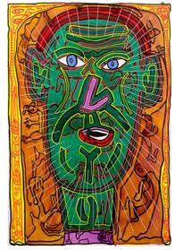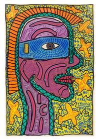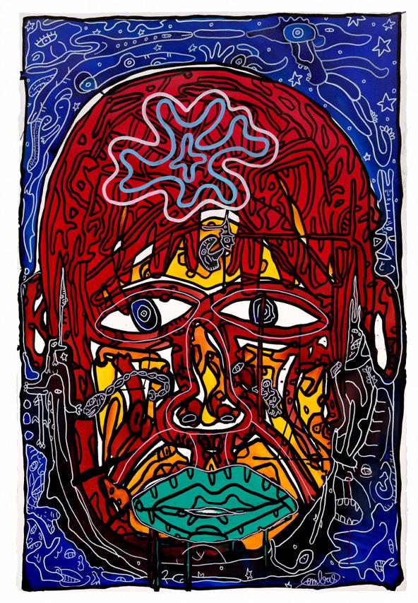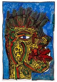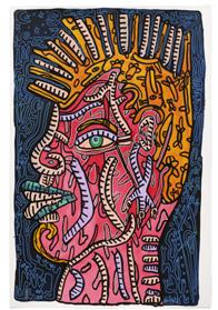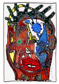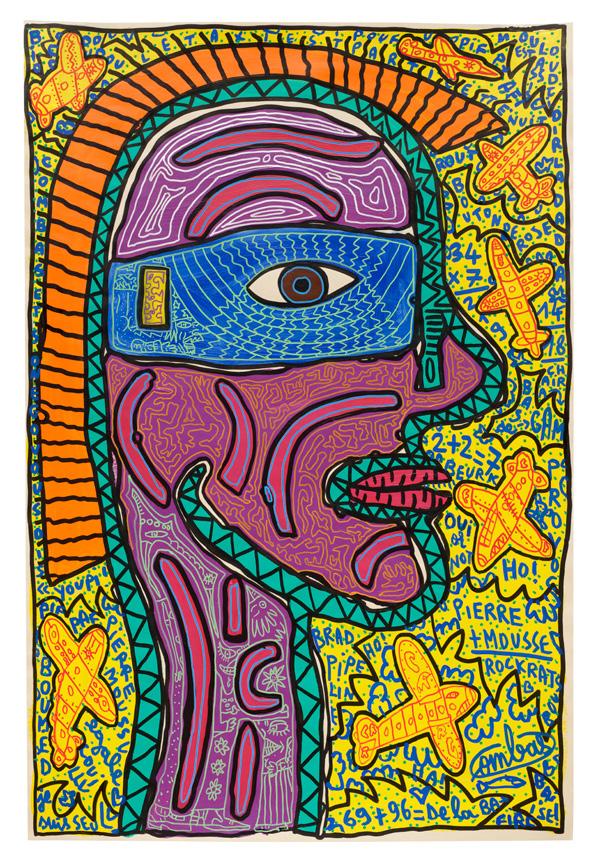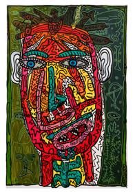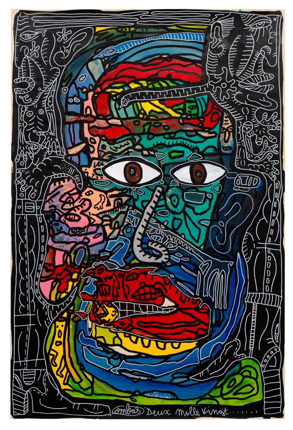 Les visages que Robert Combas peint sont en liberté dans sa peinture, en liberté dans l’infini. Comme s’ils avaient quitté leur enveloppe de peau et qu’ils étaient sortis d’euxmêmes. C’est ainsi que nous les voyons de face ou de profil, avec leur visage et leurs yeux, mais toujours comme au-delà de leur corps.