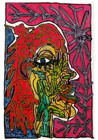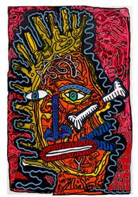 Robert Combas est si près de lui-même qu’il ne peut pas ne pas se toucher sans cesse. Son toucher est sa vue, et s’il peint tous ces portraits, ceux-ci ne peuvent être que la reproduction de ce que ses mains ont senti sous ses doigts en touchant son propre visage. Mais comment reproduire ce qui n’est pas visible mais seulement touchable, ce que l’on ne voit pas et qui est tout le temps sous les doigts ? Comment reproduire ce visage, notre propre visage dont nous sommes tous aveugles ? Robert est si près des autres quand il les voit, car ses yeux sont aussi des mains, les mains du peintre. Ses yeux