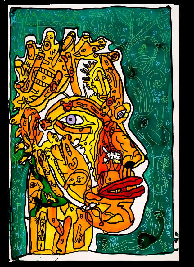 LE JEUNE JAUNI ET SA PENSÉE VERTE QUI SILLONNE SON VISAGE SAUF LA BOUCHE (EN ÉCREVISSE) !