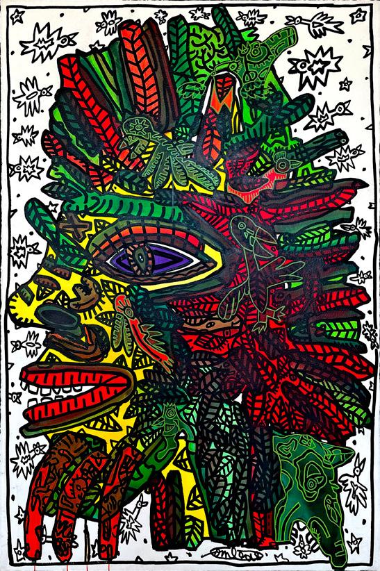 Les déplacements à l’intérieur de ses tableaux, le mouvement qui surgit dans chacun d’eux quand nous suivons le chemin labyrinthique de ses contours, l’effervescence de son bestiaire, nous font prendre conscience que notre point com-