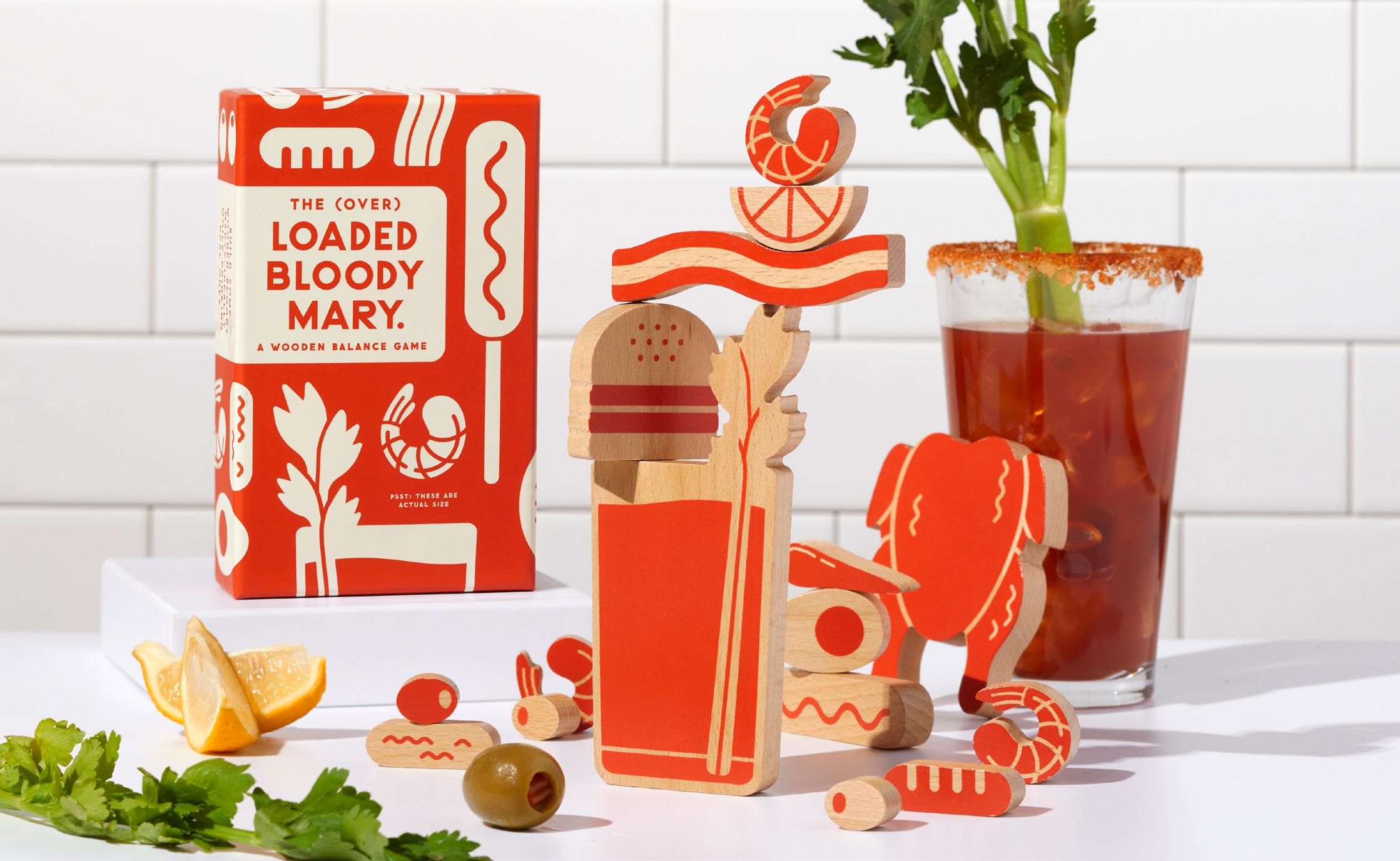 A balance game, based on a balancing act in and of itself–loaded Bloody Marys at a bottomless brunch. The sheer amount of ridiculous items we’ve seen piled on top of Bloody Marys never cease to amaze us-so we turned it into a game. Players complete by taking turns adding increasing ridiculous garnishes (celery, burgers, a full rotisserie chicken) on top of a Bloody Mary shaped starting block–as they try not to be the one that knocks it all down.