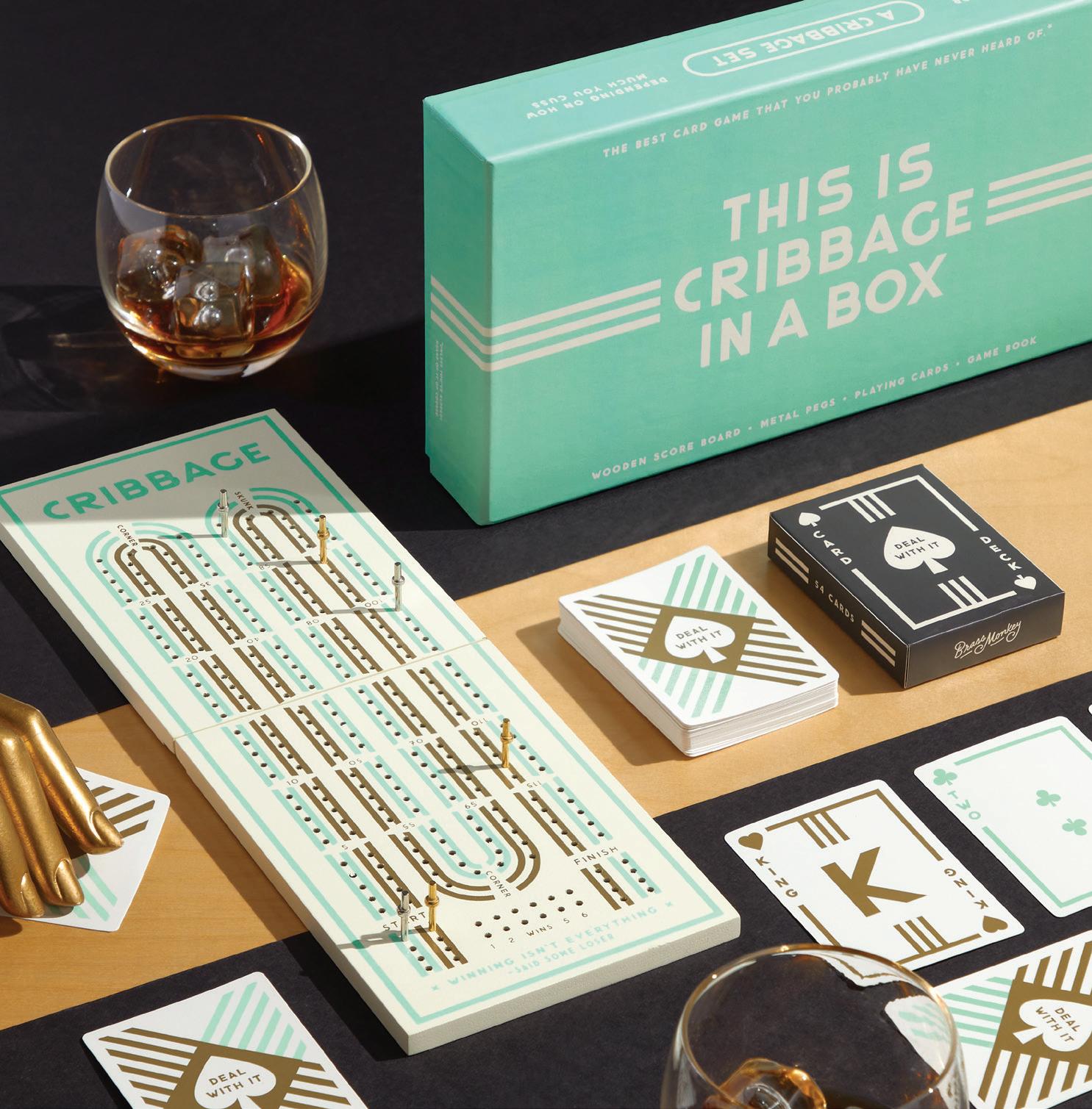 ISBN: 978-0-7353-7704-2 9 7 8 0 7 3 5 3 7 7 0 4 2 2 2 We like to say that cribbage is the best card game you’ve probably never heard of–unless you have heard of it, and in that case, we like you already. Sure, it’s a classic game - meaning your grandparents probably got mad at each other while playing it - but it’s still as fun as the day it was invented…in the 1600s. • Includes a foldable wooden game board, six metal pegs (for scoring), & an instruction sheet. • Features a uniquely (aka, beautifully) designed deck of cards. It is a card game, after all. BOX MEASURES 11.14" X 6.1" X 1.67" DEEP CRIBBAGE IN A BOX $30 .00 9780735377042 CRIBBAGE GAME SET NEW