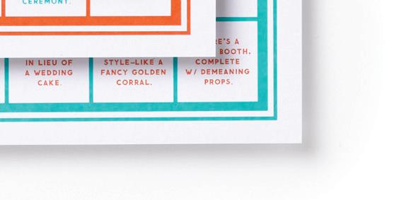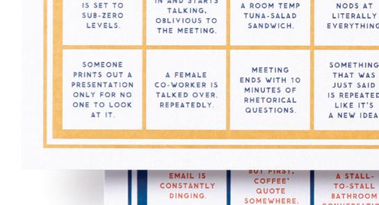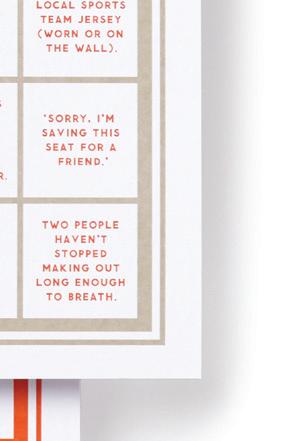 • Each features 2 distinct people-watching bingo games–like Weddings & Receptions, Meetings & Office Life, and Bars & Restaurants.