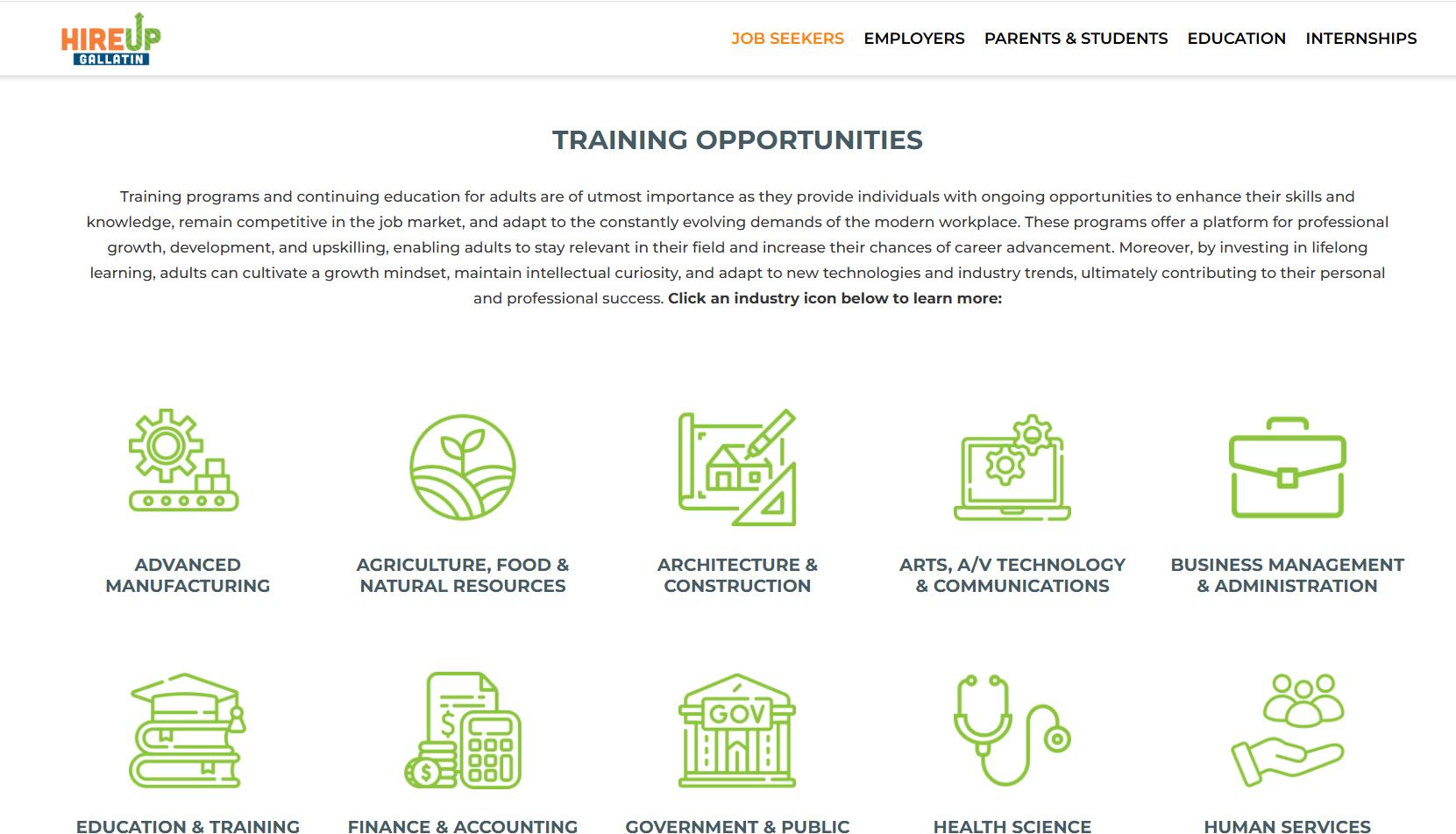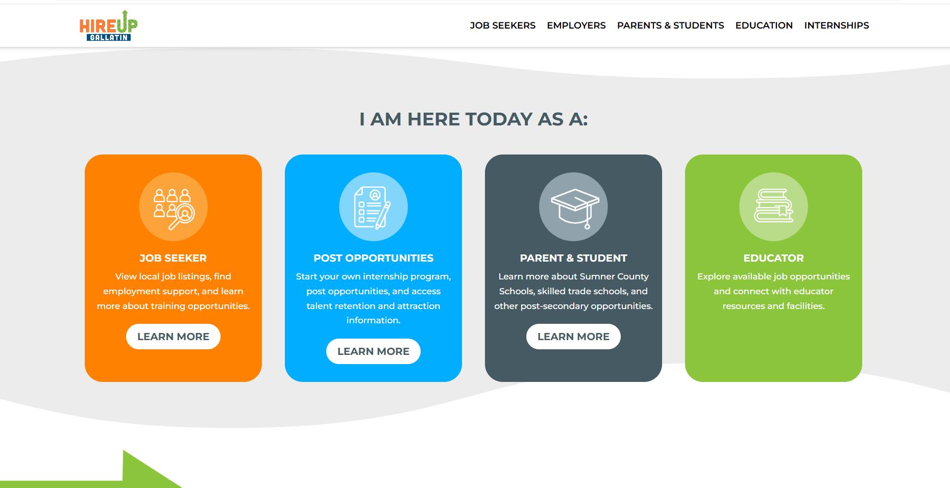 HireUp Gallatin is an initiative and website focused on Gallatin-area resources to help employers retain and grow their workforce, and aid individuals – including students – seeking career assistance. HireUp Gallatin aims to serve as a one-stop shop for businesses and individuals. Parents and students can review occupation data and learn more about skilled trade options. Educators can get connected to career-themed curriculum and request speakers. We also will be helping to support the Youth Job Fairs and workforce programming taking place in our local Gallatin public schools.