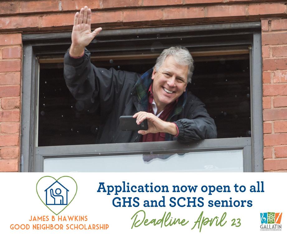 In 2020, the Gallatin Chamber Foundation expanded its awards to include scholarships for graduating seniors, to honor the late Jim Hawkins, a champion for education and the Gallatin area. The James B. Hawkins Good Neighbor Scholarship is available to seniors at Gallatin High School, Liberty Creek High School, and Station Camp High School who exemplify the traits of a good citizen.