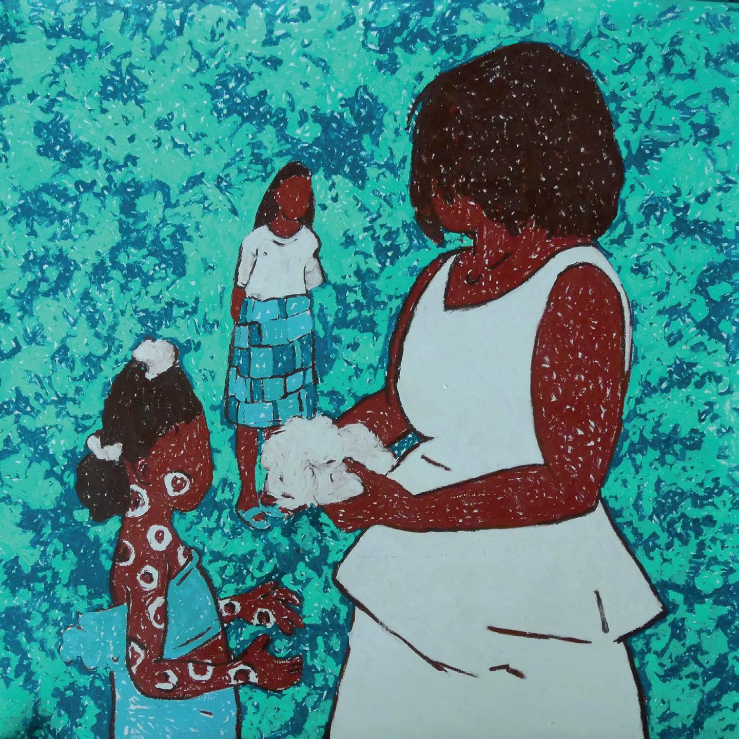 « Je crée des œuvres d’art où les souvenirs sont transformés et réinventés. Les couleurs que j’utilise sont vives et les personnages que je représente sont sans visage. »