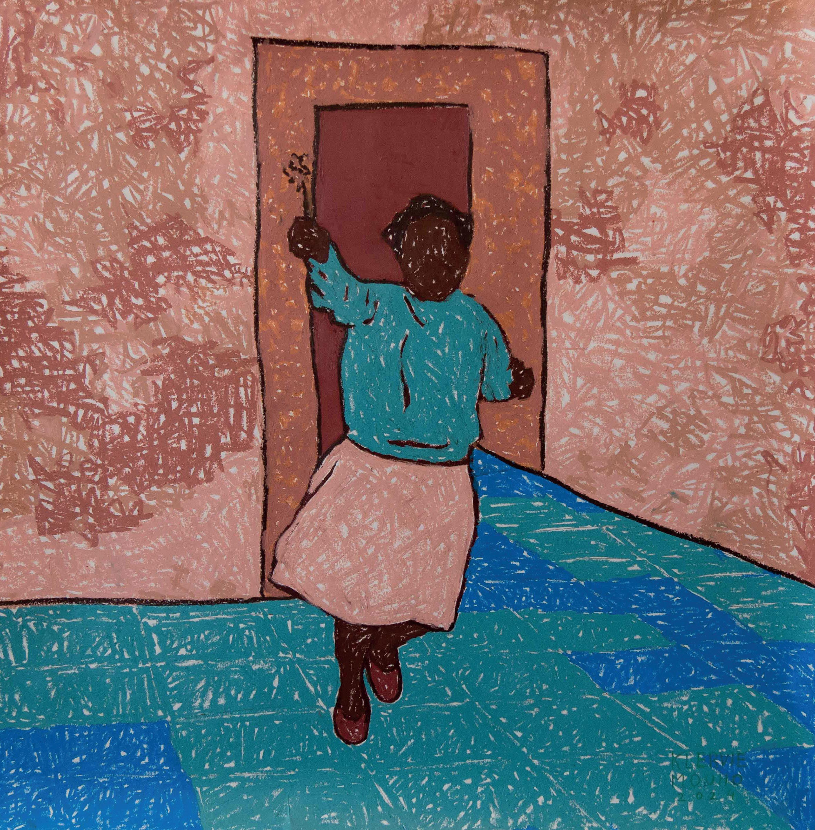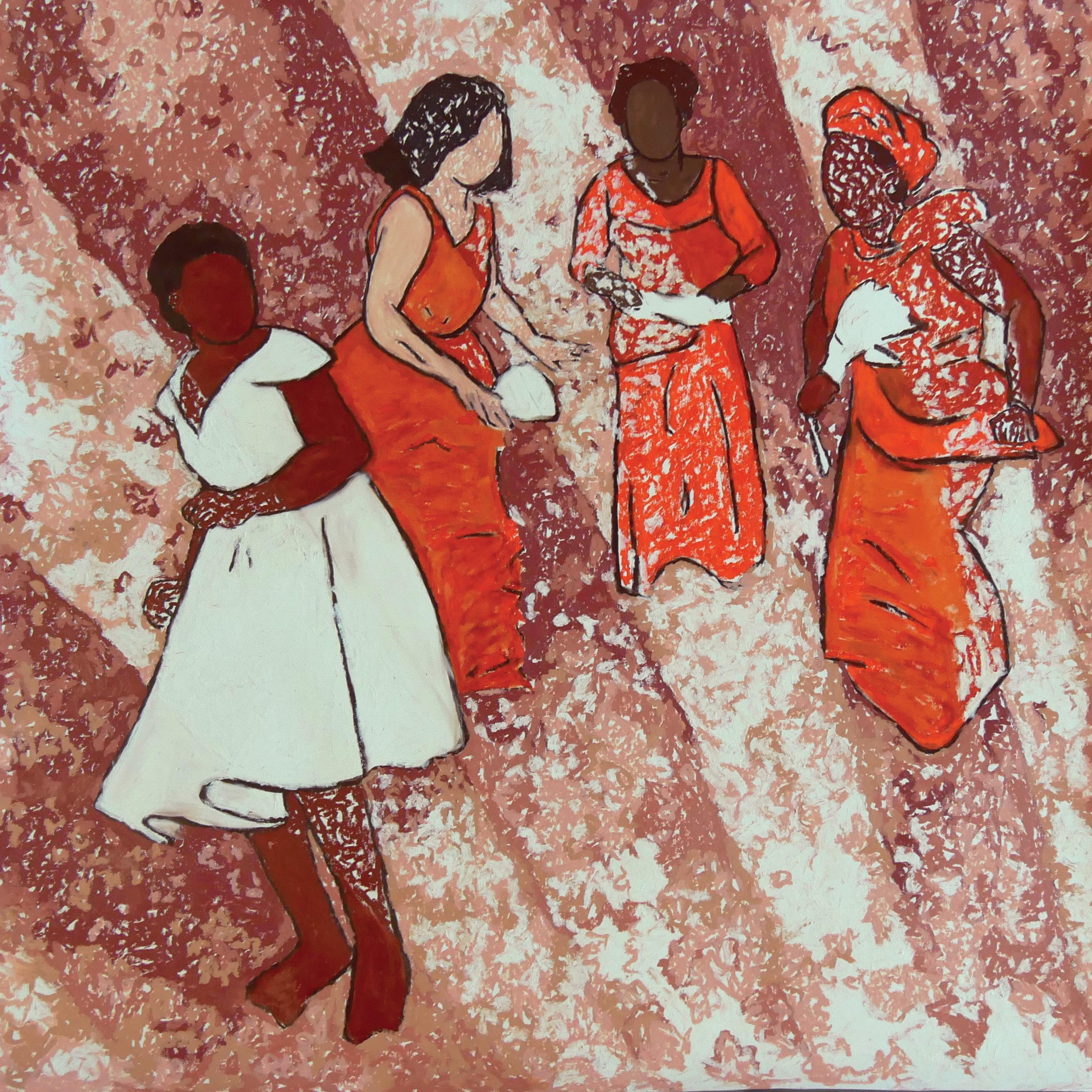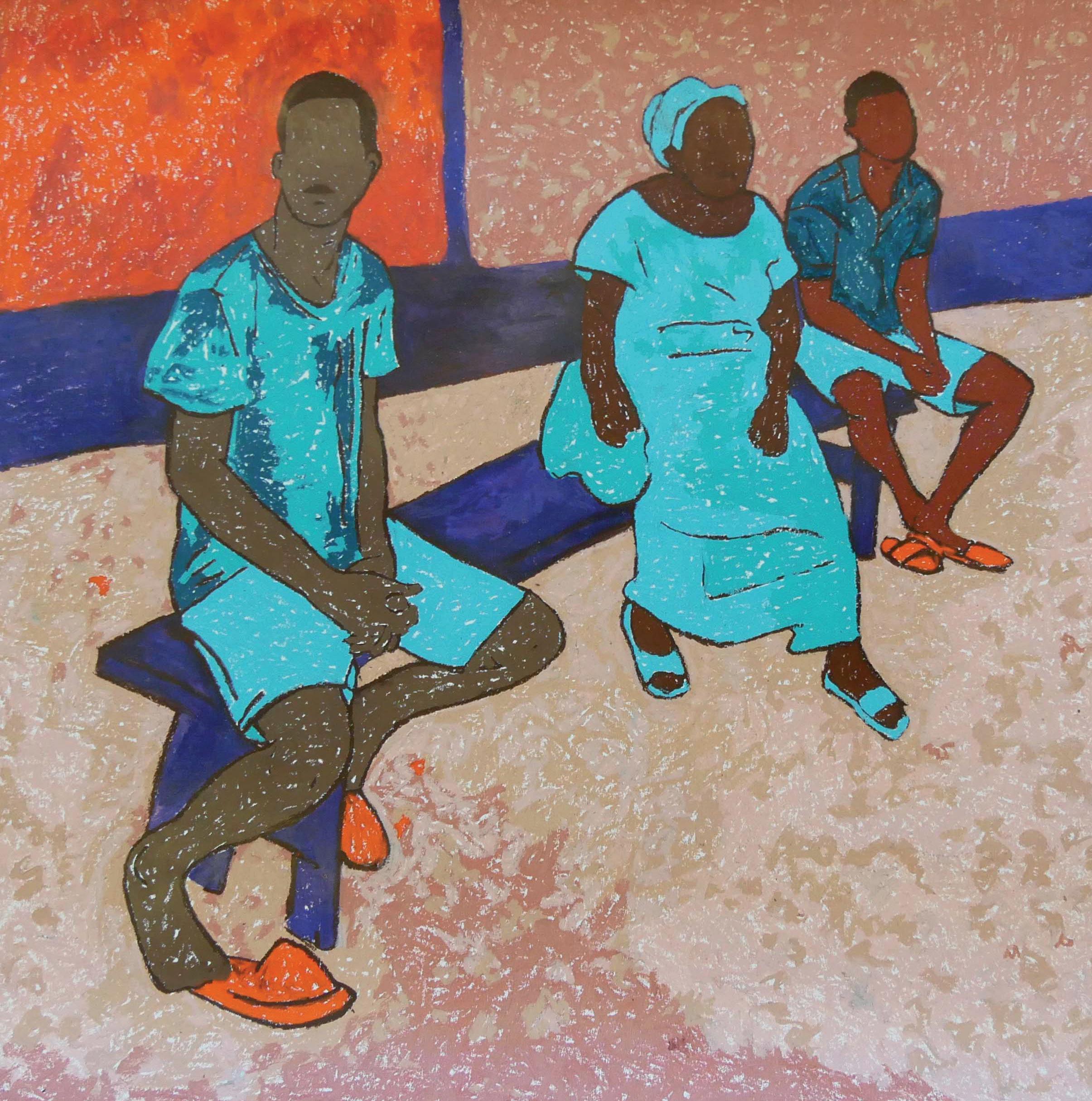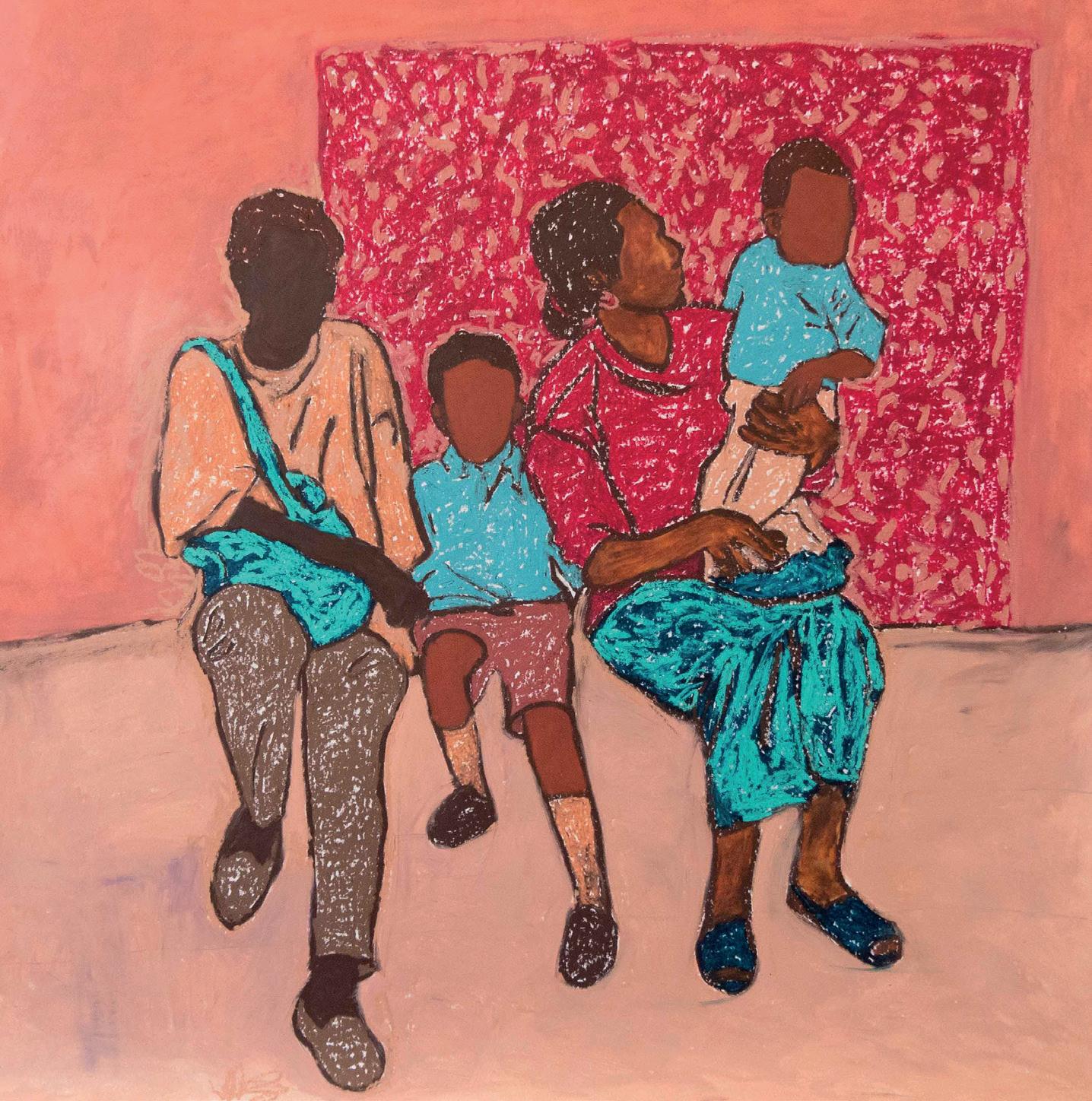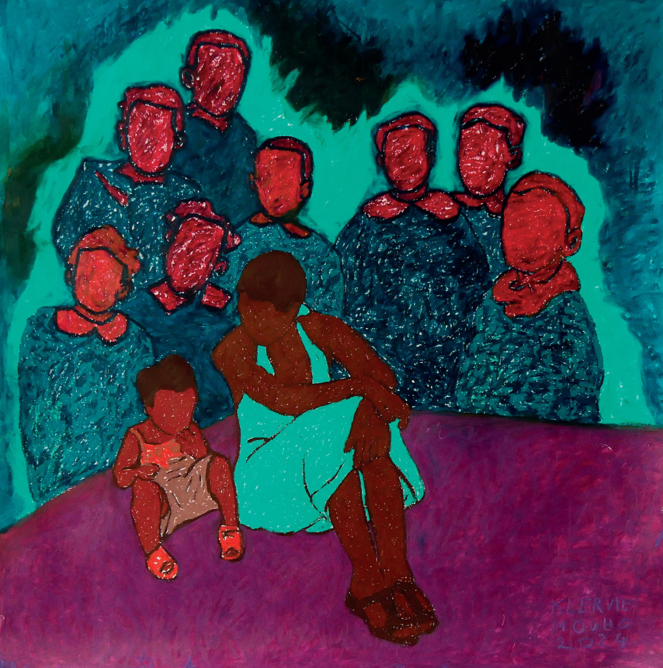 Mouho works mainly with pastel drawings, but also painting, and photography. Her work is inspired by memories that are both poignant and vague - collective memories of a troubled time in Côte d’Ivoire when she was still a child, including political unrest and military uprisings, as well as lighter, more personal memories of family visits and celebrations.