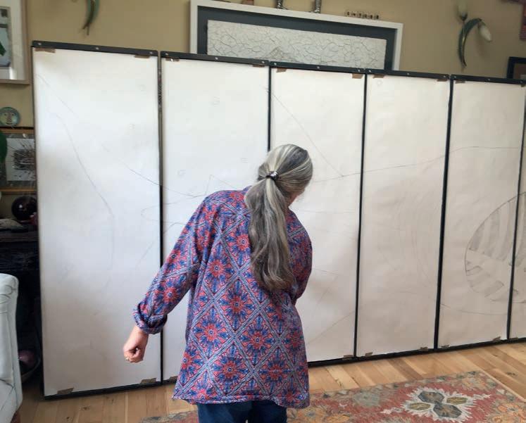 Created as part of Culture Vannin’s 40th anniversary celebrations, Kimmy’s 3 metre-long mosaic was first commissioned in early 2022, begun in Kimmy’s studio later that year and finally revealed in all its glory this August.