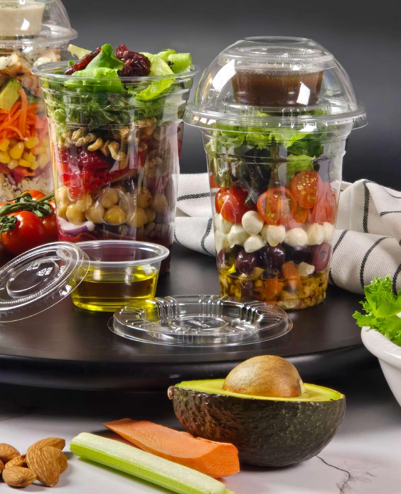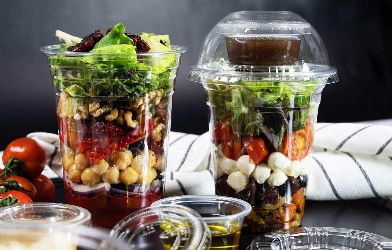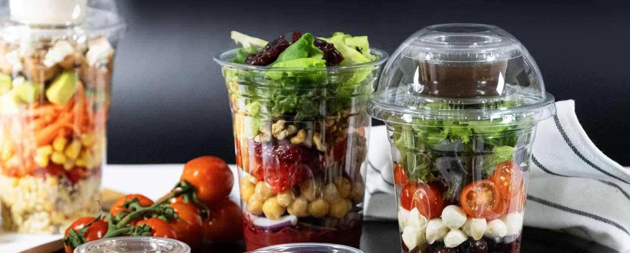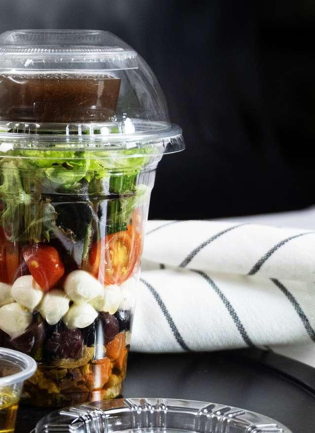 Foodservice operations that require freshness, convenience, and a striking visual appeal— particularly suitable for salads and cold meals prepared for grab-and-go, takeout, and delivery services.