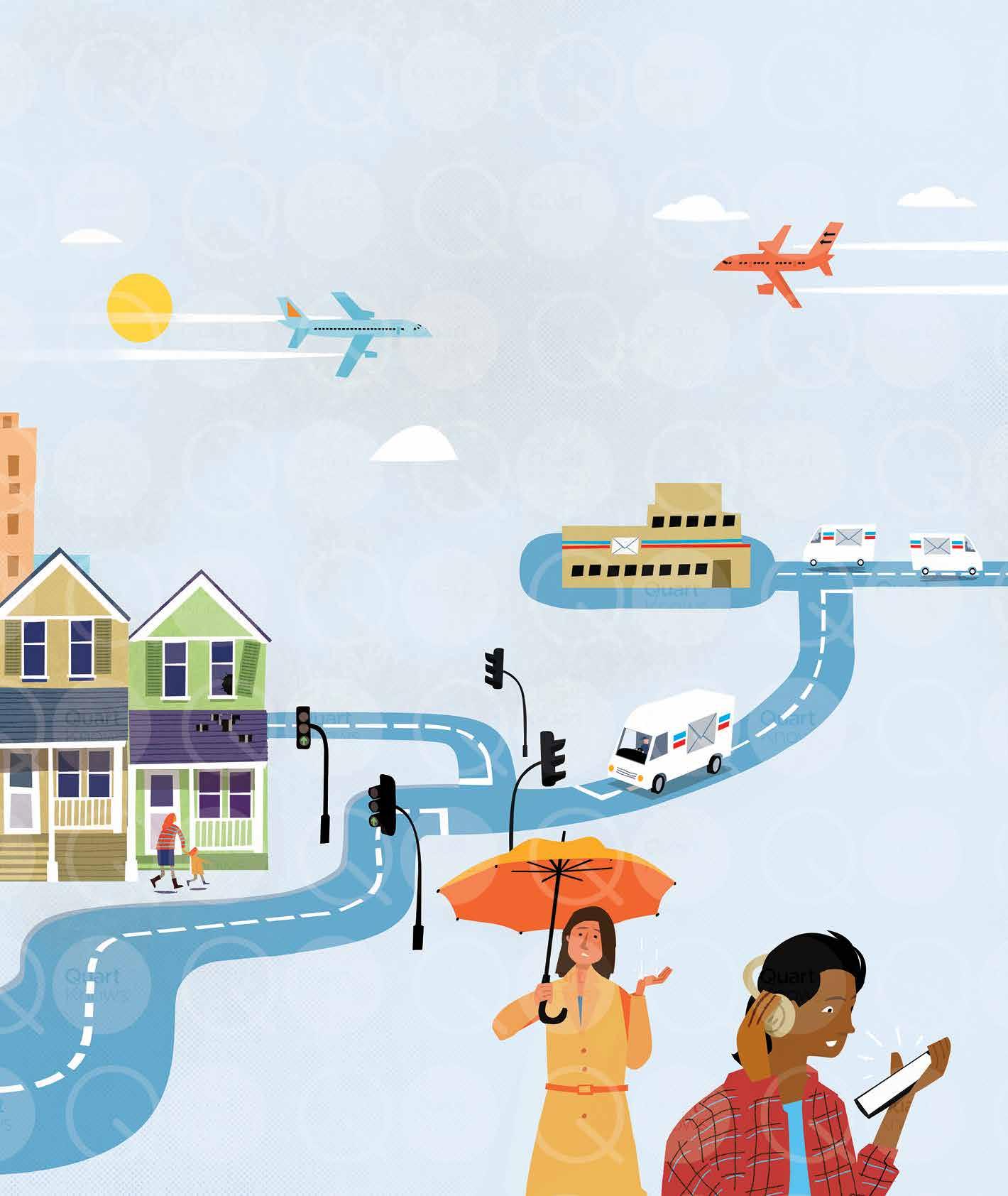 Come fanno miliardi di lettere e pacchi ad arrivare a destinazione in poco tempo? Sempre grazie alla matematica! Gli algoritmi garantiscono che le spedizioni seguano il tragitto più efficiente. Prima di tutto la posta viene inviata in un singolo luogo, che i matematici chiamano nodo centrale; qui viene smistata e spedita alla sua destinazione finale con percorsi che si diramano.
