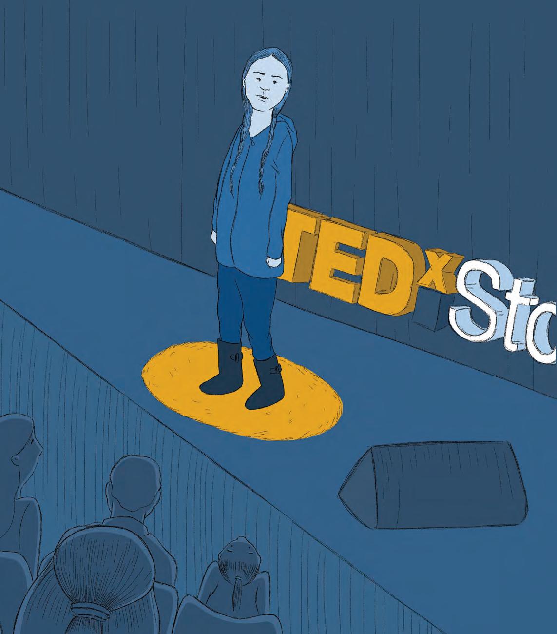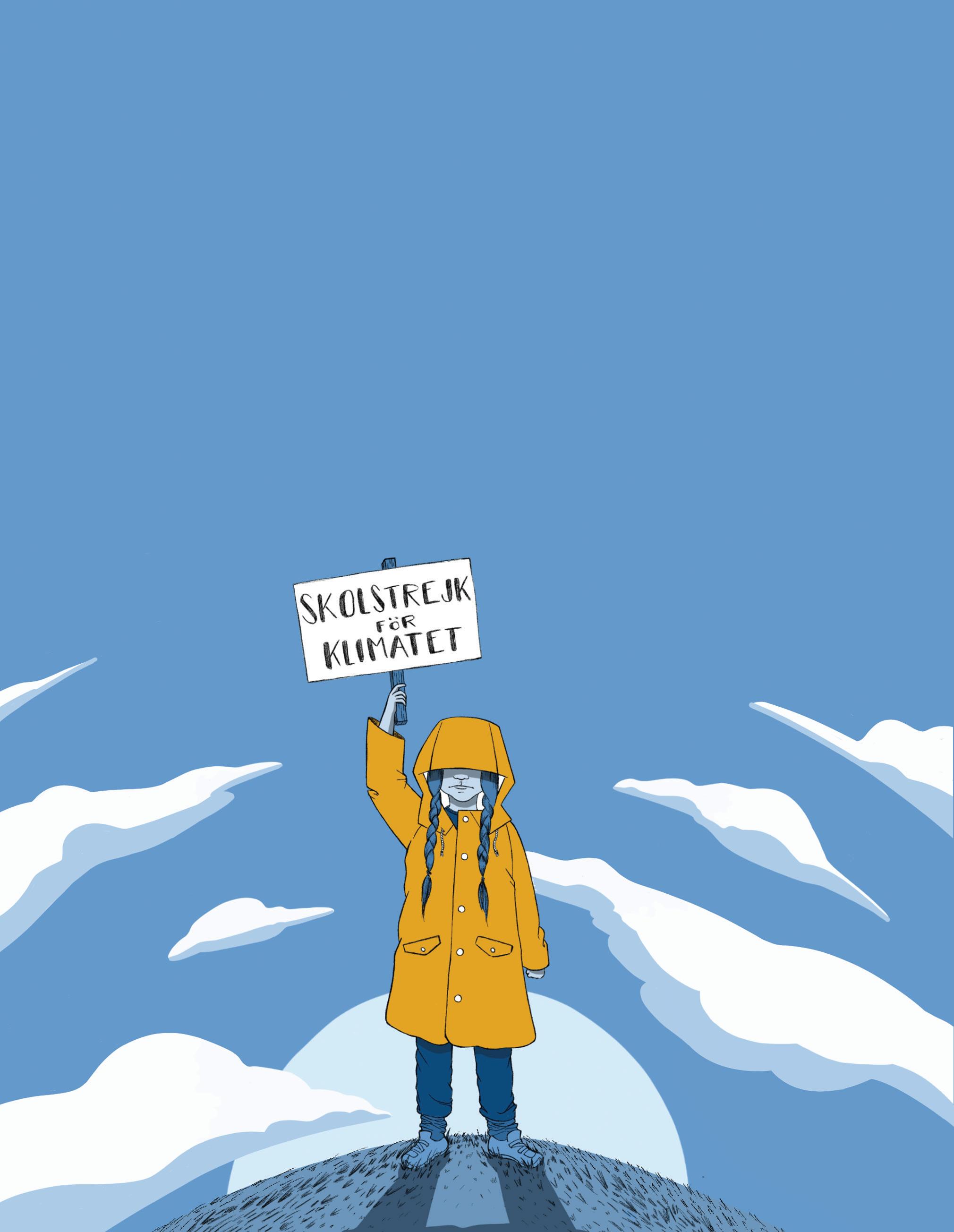 svedese con un cartello in braccio, poche parole scritte sul cartone: “Sciopero degli studenti per il clima”. L’estate del 2018 è stata incredibilmente calda per la Svezia, con punte di 35 gradi mai toccate prima e incendi che hanno richiamato aiuti e mezzi aerei per lanciare bombe d’acqua da tutti i Paesi europei. Il 9 settembre ci saranno le elezioni e Greta decide che “Se nessuno fa qualcosa, allora lo farò io”. Un giorno dopo l’altro, per quei venti giorni, rimane seduta davanti al Parlamento e comincia a richiamare l’attenzione: degli insegnanti prima, divisi tra quelli che giudicano il suo comportamento come inappropriato e quelli che vanno perfino a mettersi di fianco a lei, di molti altri semplici cittadini, attivisti più o meno giovani, i primi giornalisti. Twitter e Facebook rompono la barriera dello spazio virtuale e nel giro di un paio di settimane l’hashtag #SchoolStrikeForClimate, sciopero degli studenti per il clima, è ormai globale.