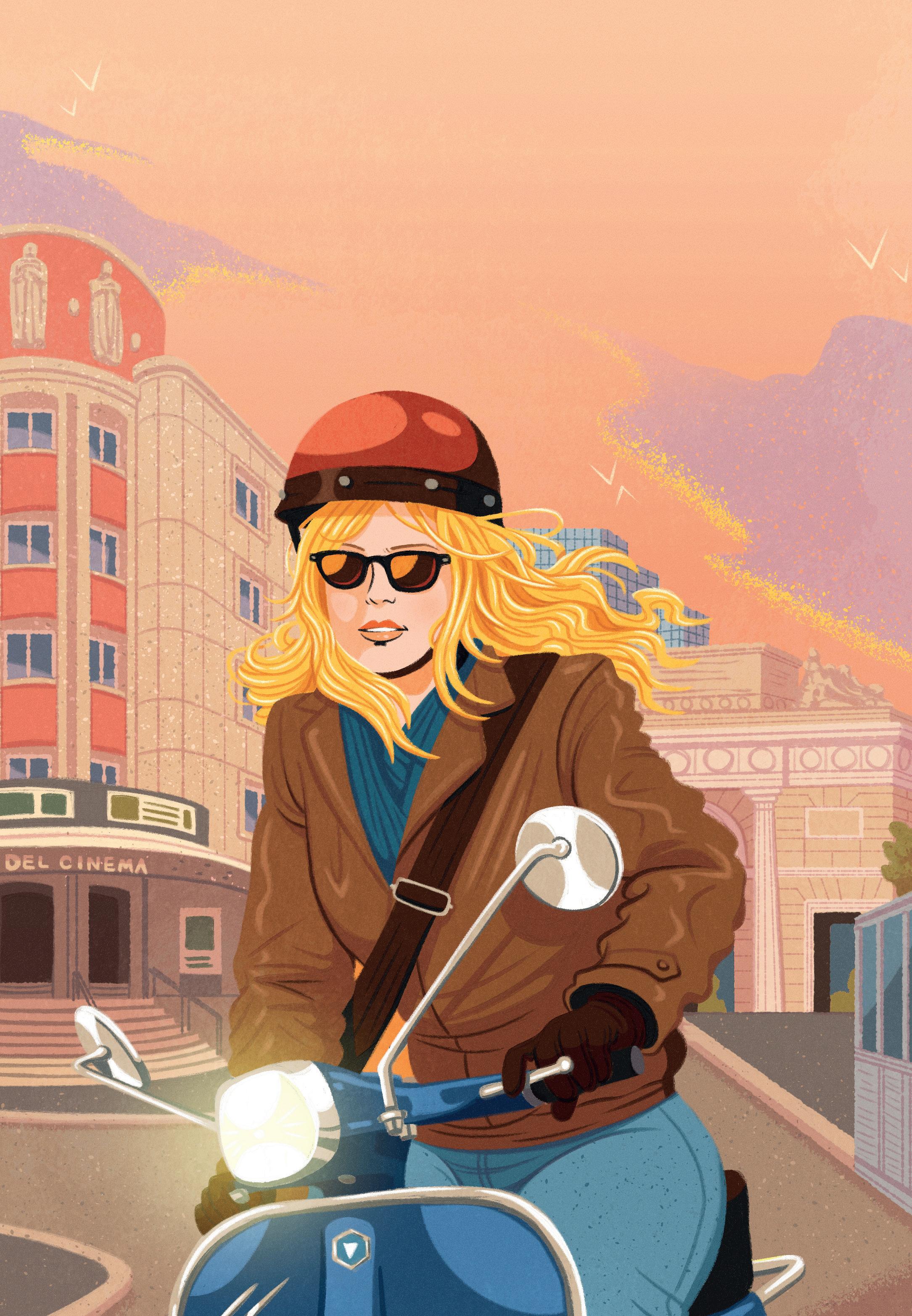 Clarice esce dalla redazione alla fine di una giornata di lavoro, Marco la aspetta fuori, seduto sulla sua Vespa. È come uno scatto fotografico negli occhi di entrambi, l’istantanea di questo tramonto di giugno.