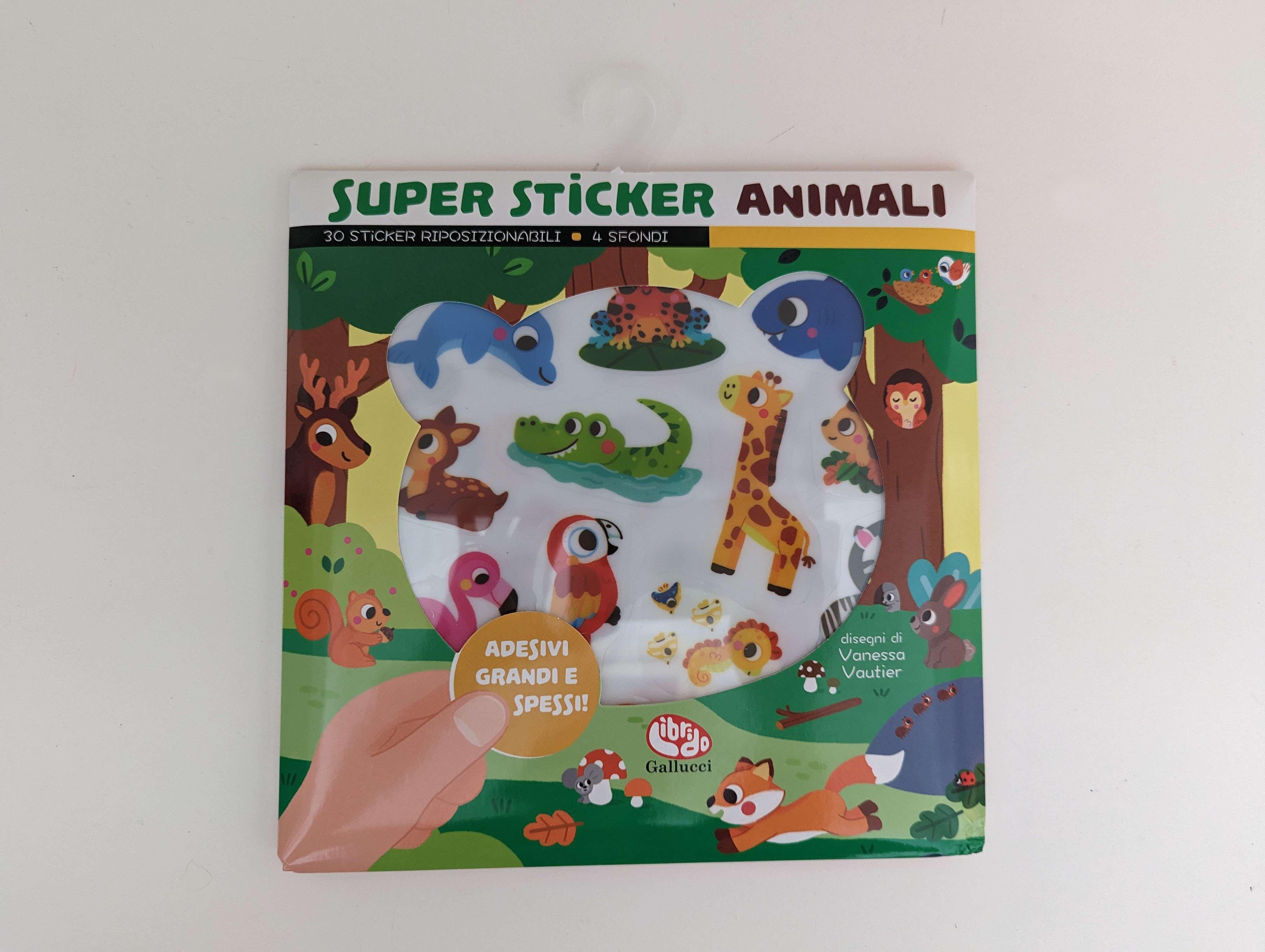 In ogni confezione: 30 sticker riposizionabili, 4 cartoncini rigidi da utilizzare come sfondo, 1 foglio di istruzioni.