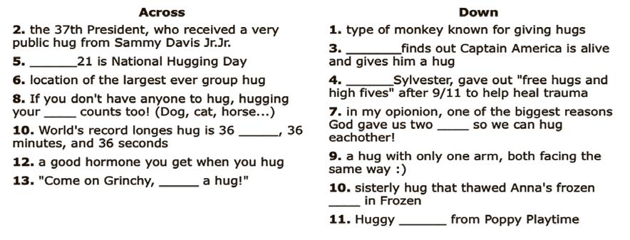 • Hugs can release feel-good hormones like oxytocin and dopamine, which help take away worry and bad feelings!