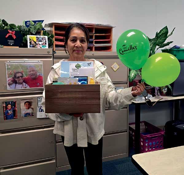 Receiving Teacher of the Month was one of those meaningful moments for Mrs. G. She shared that she was overwhelmed and honored by the recognition. A regular at Camille’s, she joked that the award felt especially perfect. Her favorite item is the peanut butter treat. She also enjoys the flatbread pizzas and the Bangkok Thai Wrap. Camille’s is a favorite meeting spot where she enjoys gathering with colleagues.