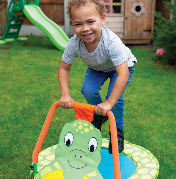 • Soft velour resting area with harness cradles baby over inflatable ring.