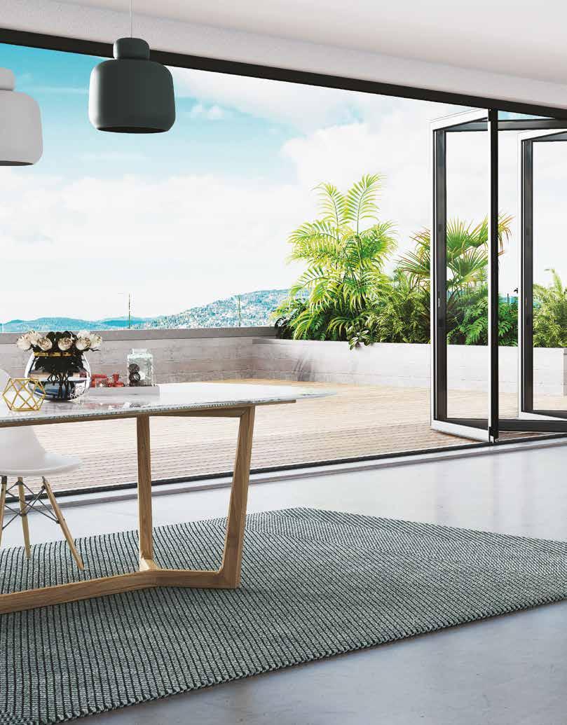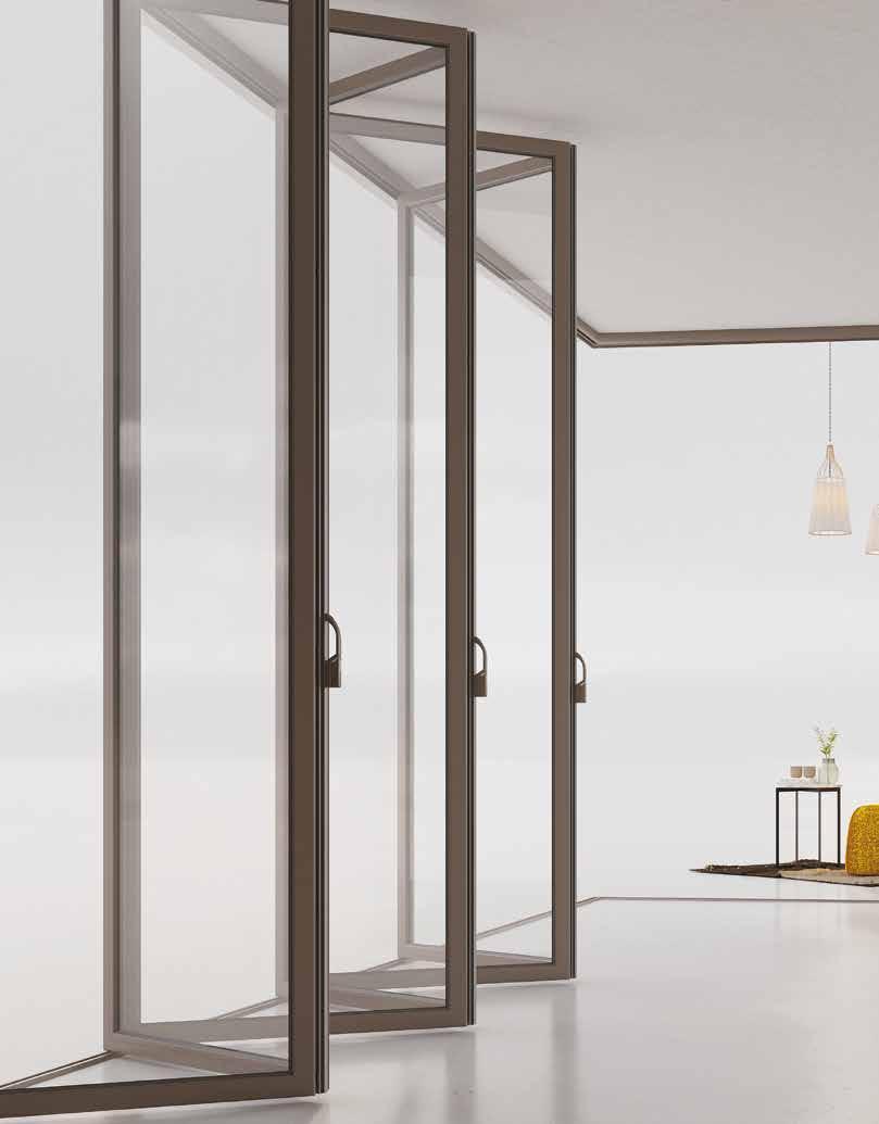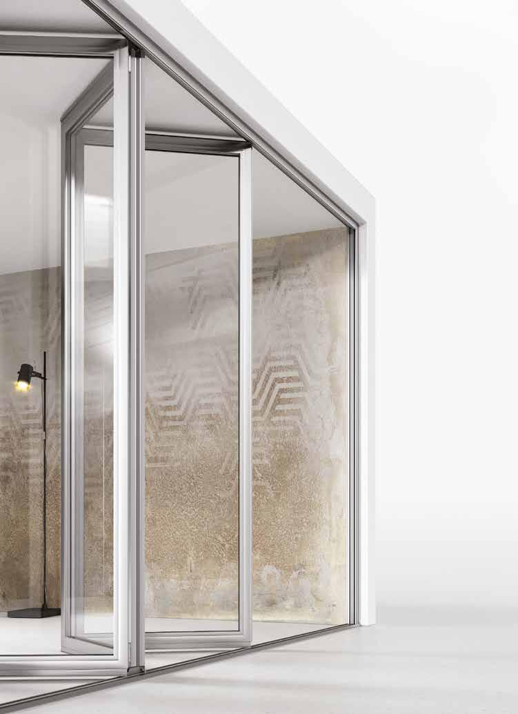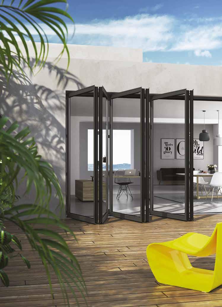 vetro si collega alle altre ruotando e raccogliendosi in un pacco laterale, il tutto all’interno di un’unica guida. Questo sistema ti garantisce l’apertura totale della luce naturale, creando un ambiente continuo tra interno ed esterno.
