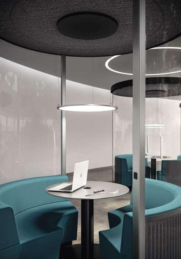 INNOVATIVO box acustico circolare autoportante in vetro INNOVATIVE self-supporting circular acoustic box in glass