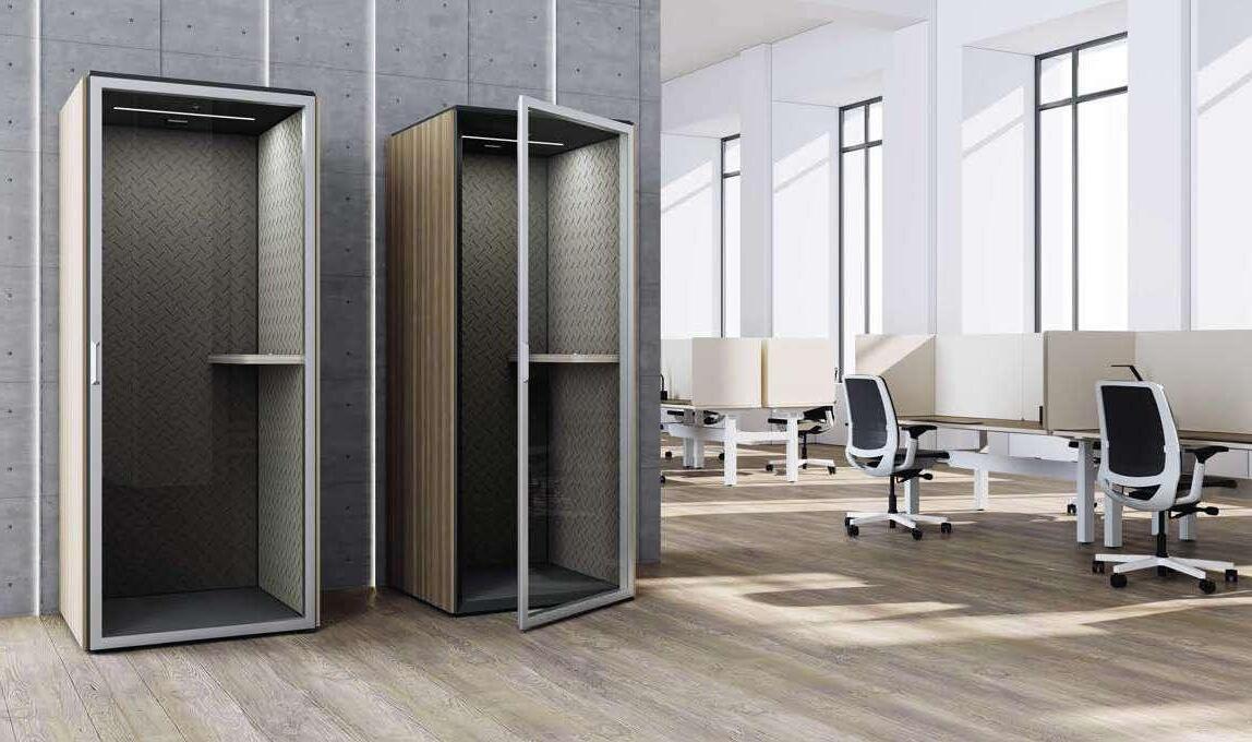 Sistema di box acustici per uffici che permette di ricavare spazi riservati acusticamente protetti.